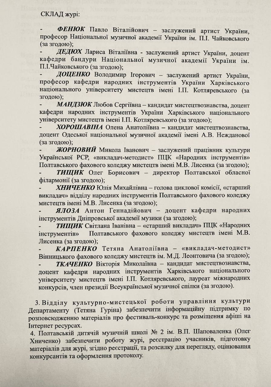 Всеукраїнський відкритий фестиваль-конкурс "Барви Полтави" виконавської майстеності гри на народних інструментах учнів та викладачів мистецьких шкіл проводиться з метою популяризації мистецтва гри на народних інструментах та народної музики, збагачення культурних здобутків України, виявлення і підтримка талановитої молоді, реалізації творчого потенціалу юних обдарувань, удосконалення методики навчання гри на народних інструментах.