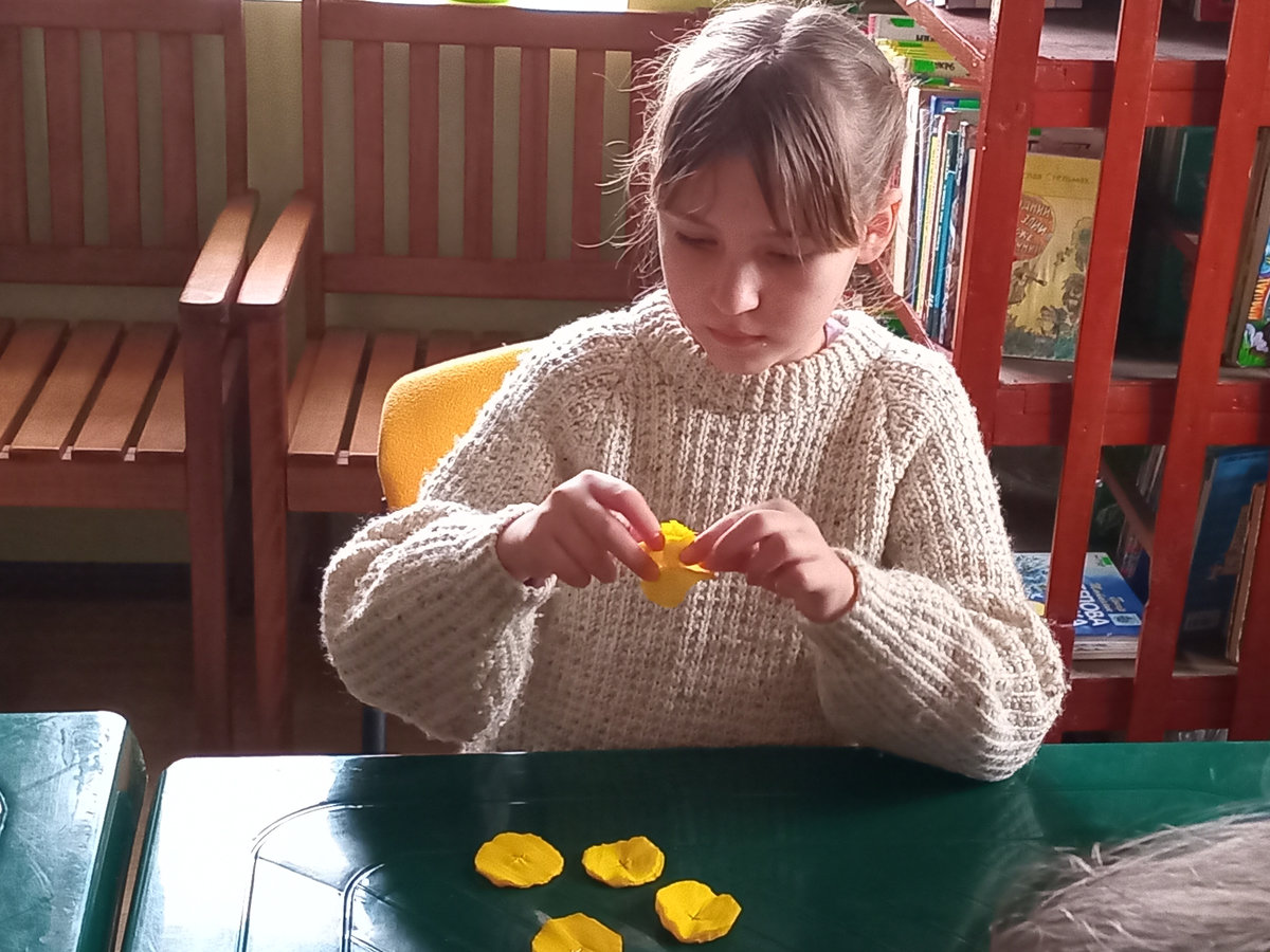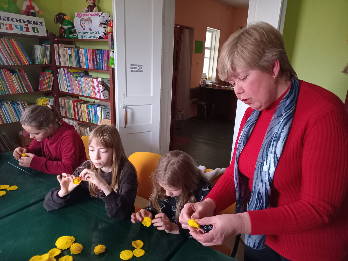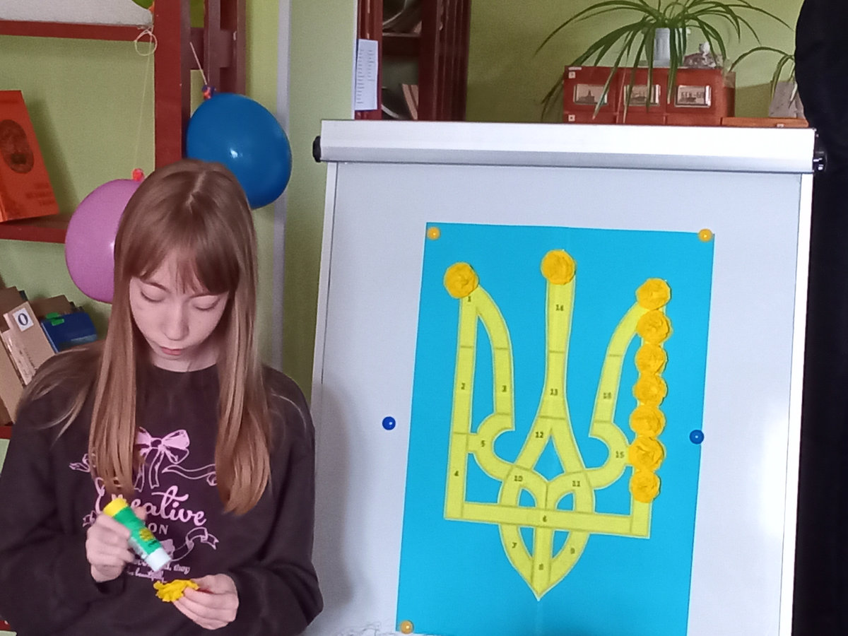 На практичній частині майстер-класу діти із гофропаперу виготовили квіти й прикрасили ними шаблон Герба. Вони продемонстрували неабияку увагу до деталей, старанно проробляючи кожен елемент.
