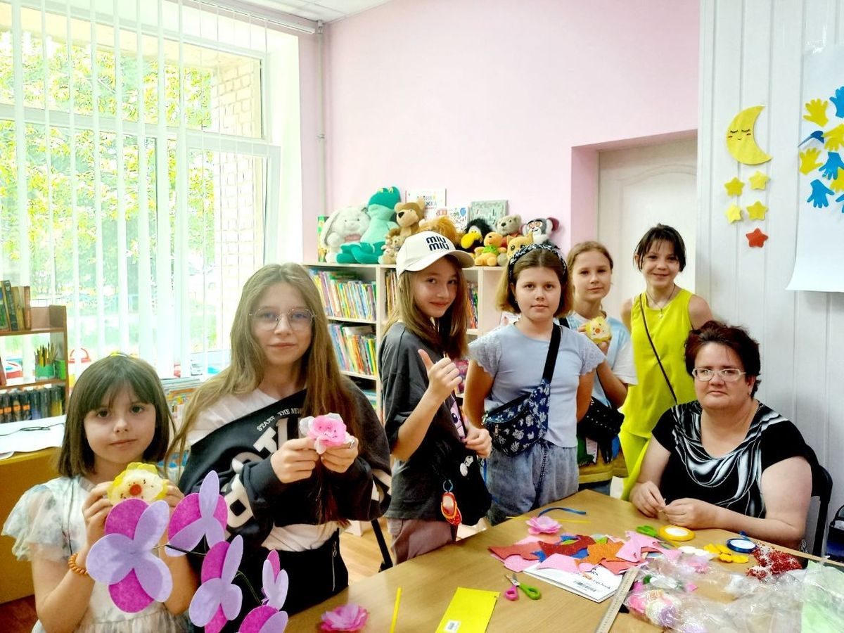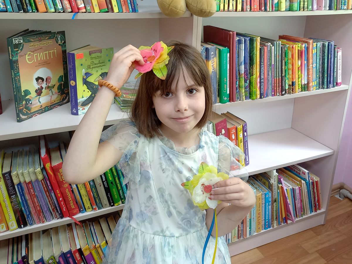 Розмовляючи, вже за годину, дівчата приміряли прикраси для волосся виготовлені власноруч. Звичайно ж, ідея створення «чарівних квіточок» належала керівниці артмайстерні Ларисі Гецелевич.