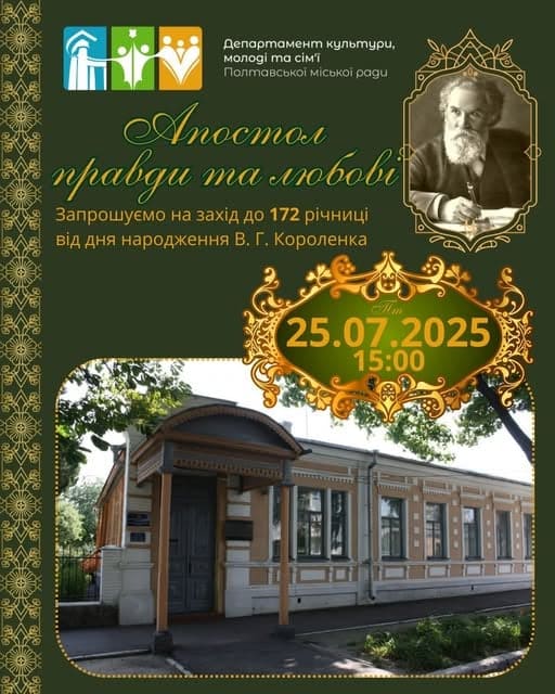 З нагоди 172-ї річниці від дня народження видатного полтавця, письменника, публіциста і громадського діяча Володимира Галактіоновича Короленка у Полтавському літературно-меморіальному музеї В. Г. Короленка відбувся урочистий захід під назвою "Апостол правди та любові".