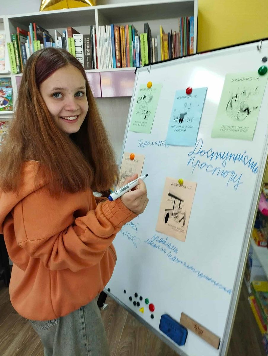 Користуючись нагодою ми розповіли і про свій проєкт створення молодіжного простору "Friendly Place - більше, ніж бібліотека" та попросили підлітків попрацювати в групах та висловити і свої побажання до того, що б вони хотіли робити у новому просторі та що варто придбати. Всі дуже активно попрацювали і залишили нам цікаві ідеї для втілення!