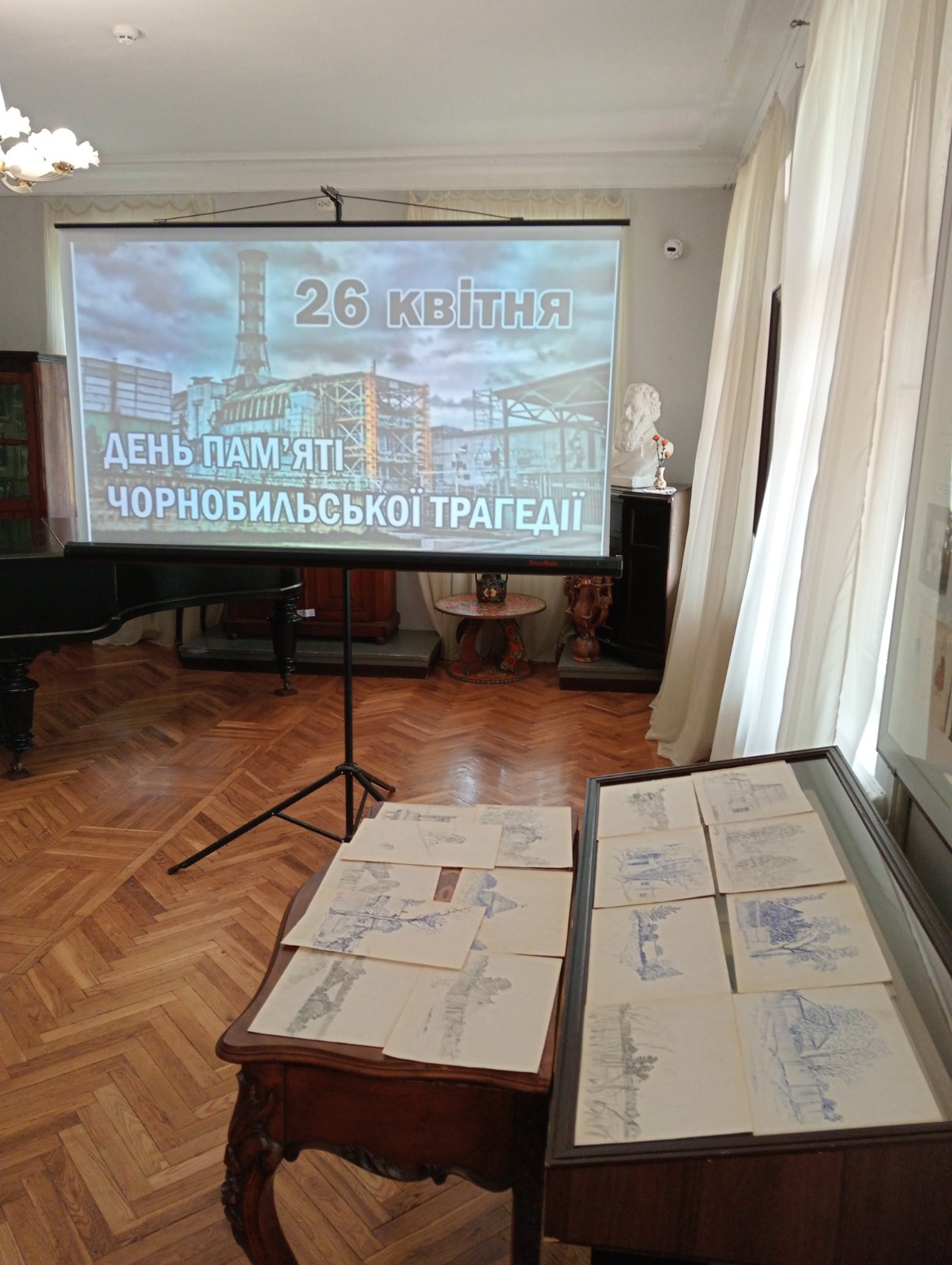 Чорнобиль – це нагадування про ціну людської помилки і водночас символ неймовірної сили духу. Особливою ціною стала мужність ліквідаторів – тих, хто, ризикуючи власним життям, став на захист інших і зупинив ще більшу катастрофу. Студенти також мали можливість ознайомитися з малюнками, зробленими безпосередньо з місця подій ліквідатором Чорнобильської аварії – Олександром Петровичем Хорунжим, які він подарував музею і які зараз експонуються у великій залі літературного будинку.