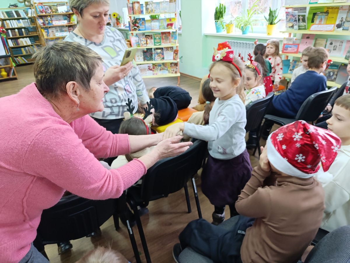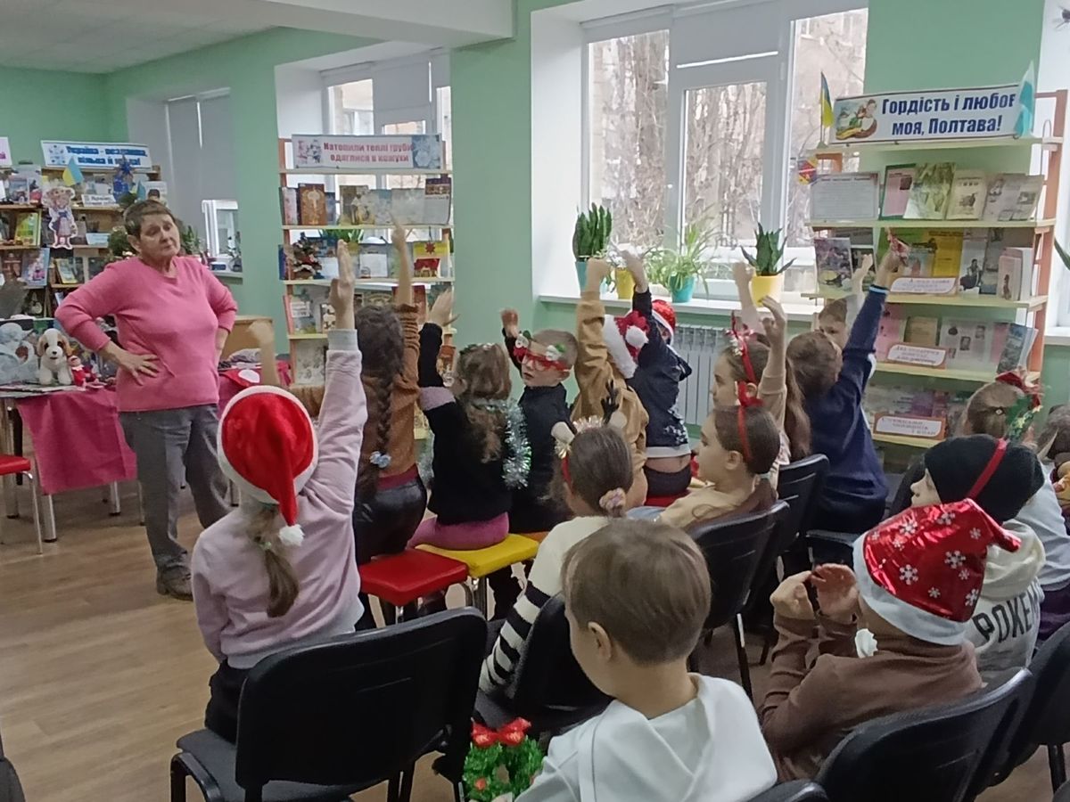 Оскільки цього року діти вперше завітали до бібліотеки, ми разом провели невеличку оглядову екскурсію, під час якої ознайомили їх із бібліотечними новинками та різними тематичними локаціями. Далі бібліотекар читальної зали розповіла дітлахам про цікаві новорічні традиції різних країн і продемонструвала святкові атрибути, які використовують мешканці світу в очікуванні Нового року.