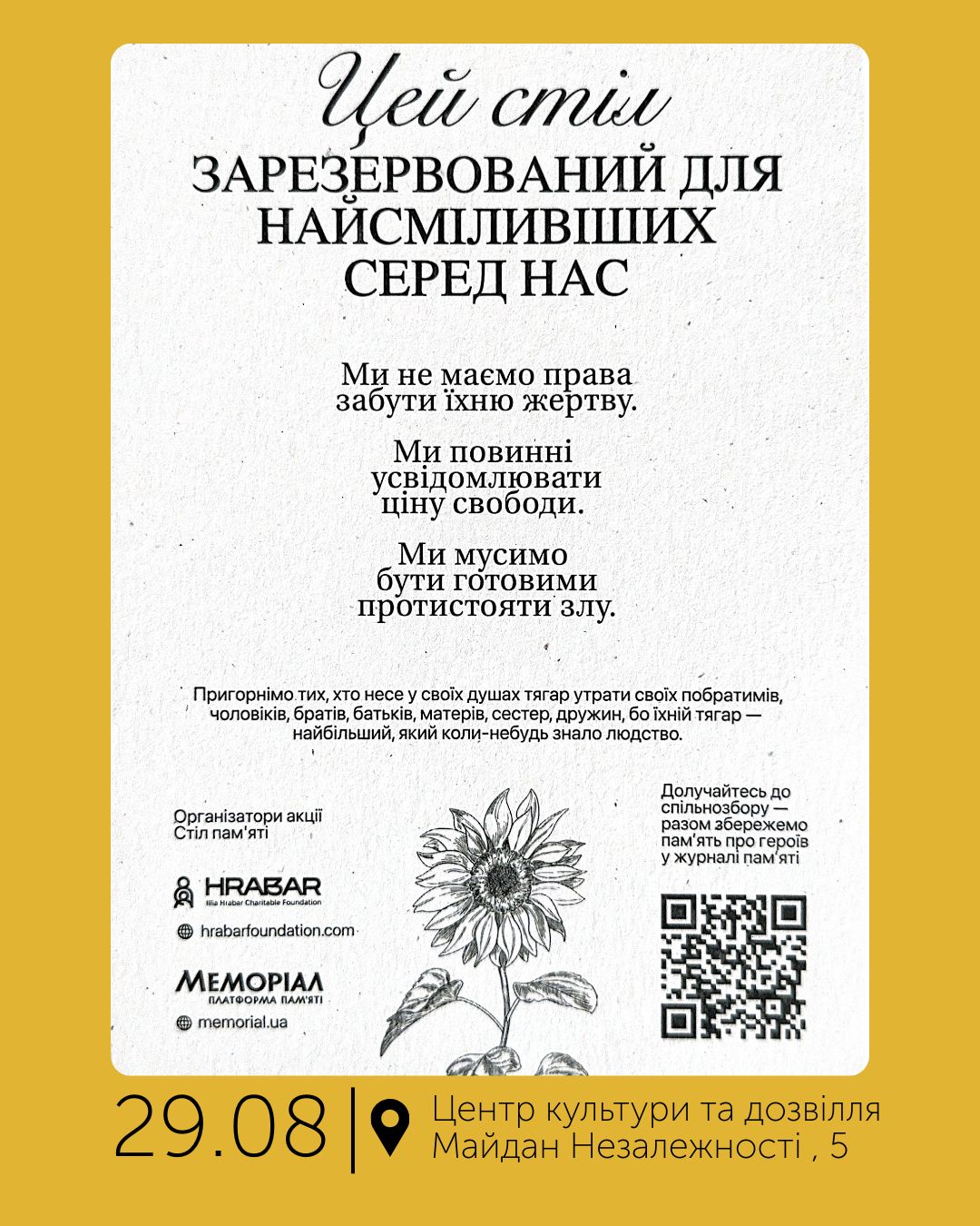 «Стіл пам’яті» – це простір, який творимо разом. Кожне ім’я, кожна свічка і кожна хвилина тиші перетворюють пам’ять на спільну дію.