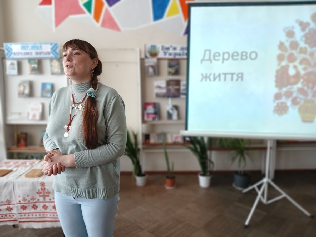 Перегортаючи сторінки всесвітньої історії, міфології народів світу Катерина Штепа, науковця Полтавського краєзнавчого музею провела користувачів бібліотеки-філії №5 філософською дорогою пізнання таємниць безперервності життя. Дідух, писанки, вишиванки – це ключі для розуміння неосяжної душі українського народу.