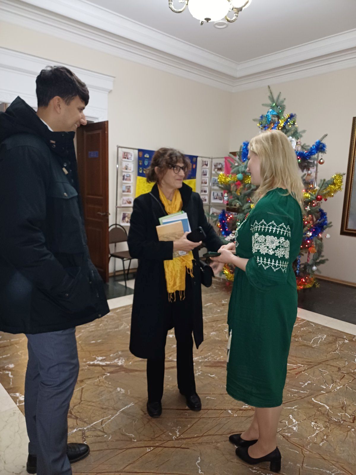 Екскурсію для представників Посольства провів науковий співробітник відділу фондів та експозиції Світодар Палій, який ознайомив делегацію з унікальними артефактами нашої колекції та ключовими аспектами історії Гетьманщини, подій Великої Північної війни та Полтавської битви 1709 року.
