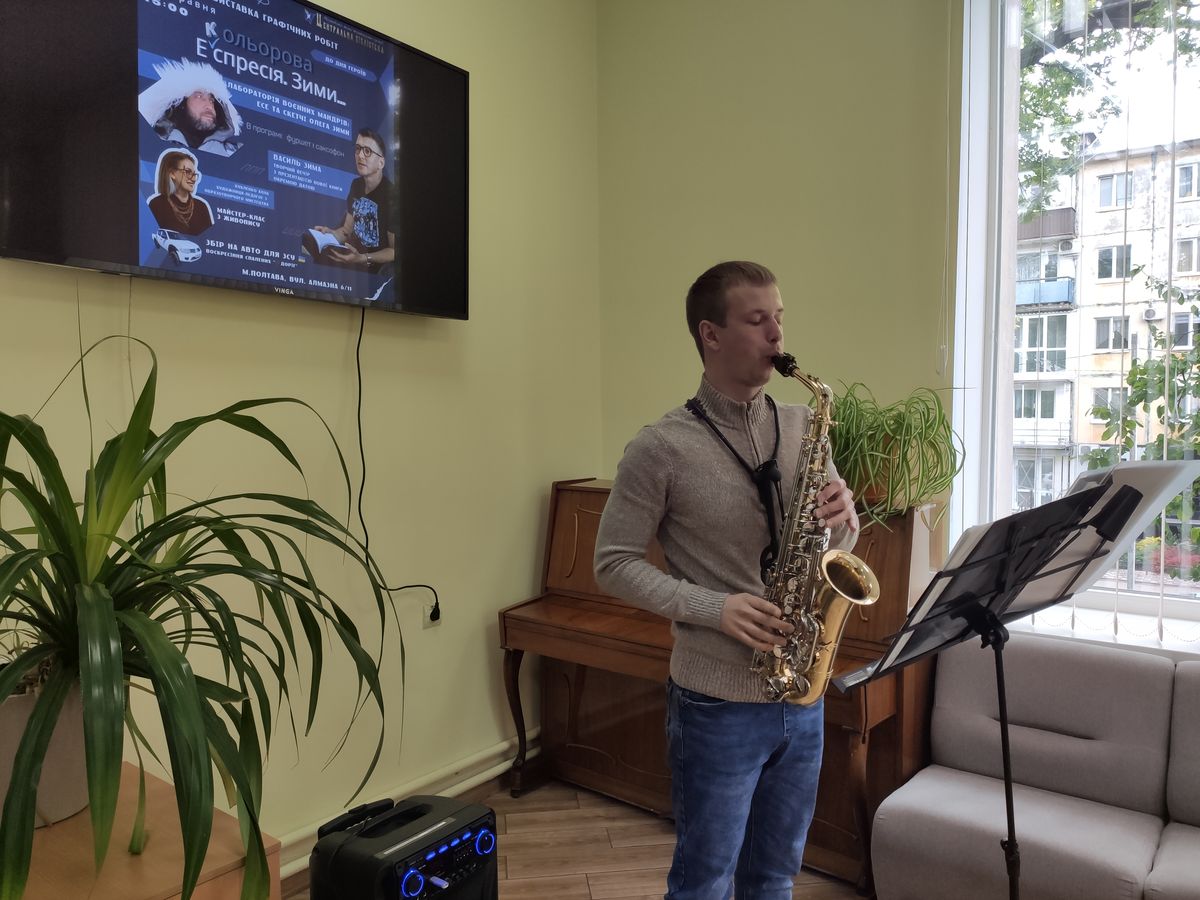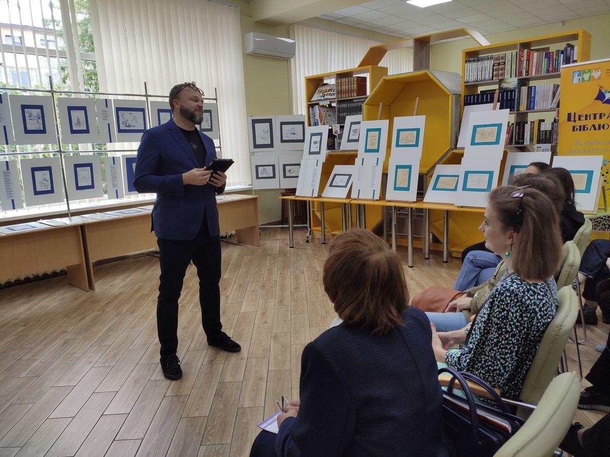 23 травня Україна відзначає День Героїв – день пам’яті та гордості за тих, хто став на захист свободи та незалежності України. Напередодні в Центральній бібліотеці Полтавської МТГ відбулася презентація творчого доробку військовослужбовця Олега Зими, куди увійшли графічні рисунки, есе та невеличкі вірші. Працює митець у жанрі скетч, його роботи – це реакція на те, що відбувається навколо: замальовки ситуацій, емоцій.