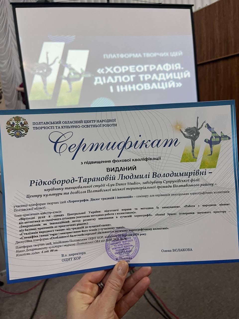 Працівники Центру культури та дозвілля та його філій взяли участь в обласному семінарі для керівників аматорських хореографічних колективів — платформі творчих ідей «Хореографія. Діалог традицій і інновацій», де підвищили свою фахову кваліфікацію та долучилися до професійного діалогу про розвиток сучасної хореографії.