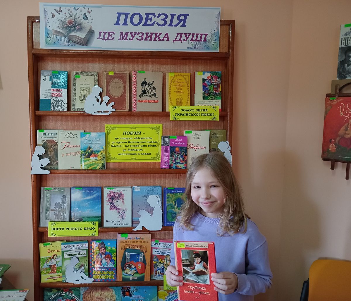 Окрім того, у них була можливість познайомитися з книжковою виставкою «Поезія – це музика душі» та присвяченою Ліні Костенко викладкою «Сподіваюся бути почутою». Дівчатка навіть спробували під час години поезії написати власні вірші, що виявилося досить непростим завданням.