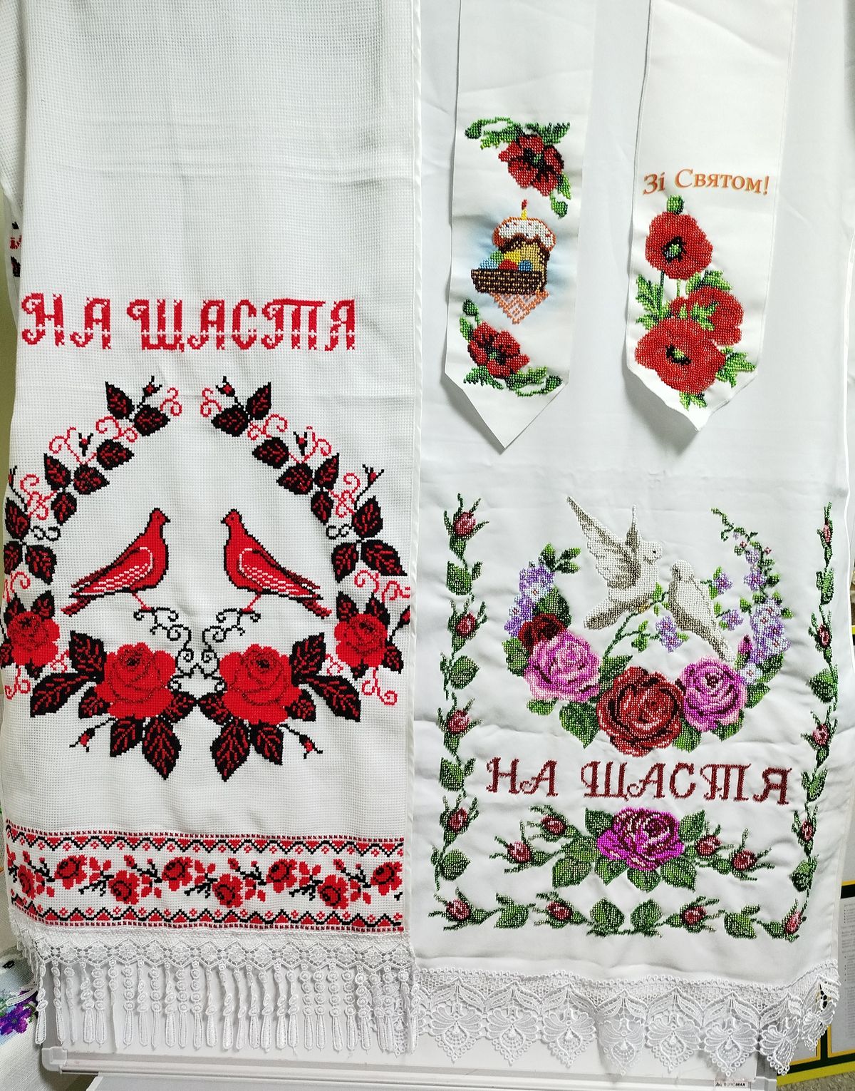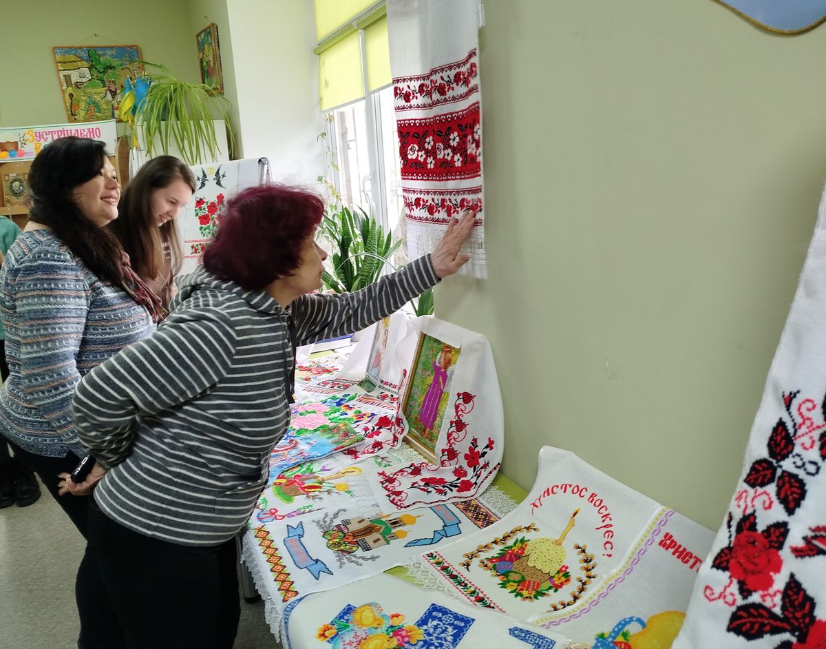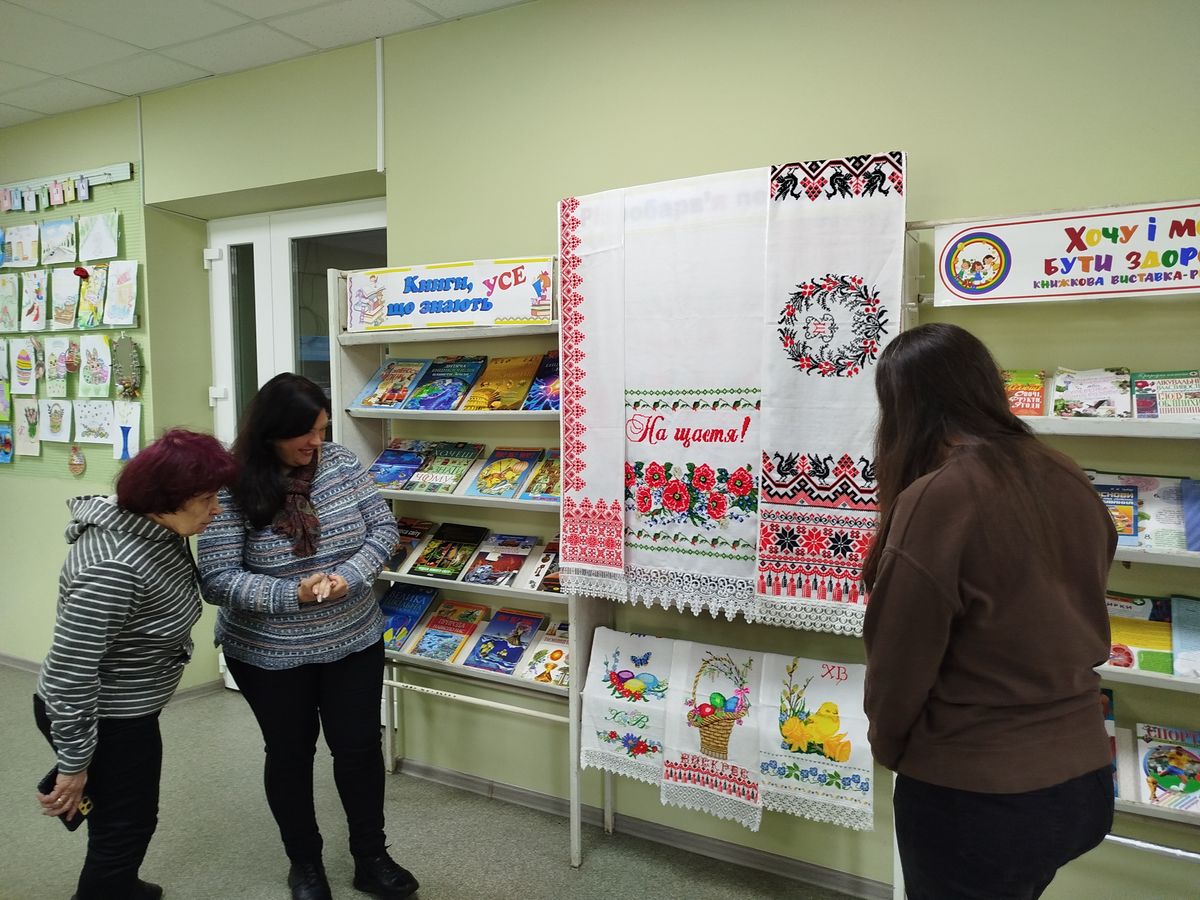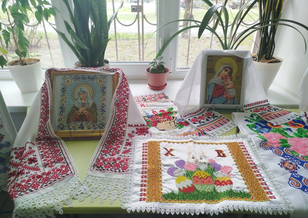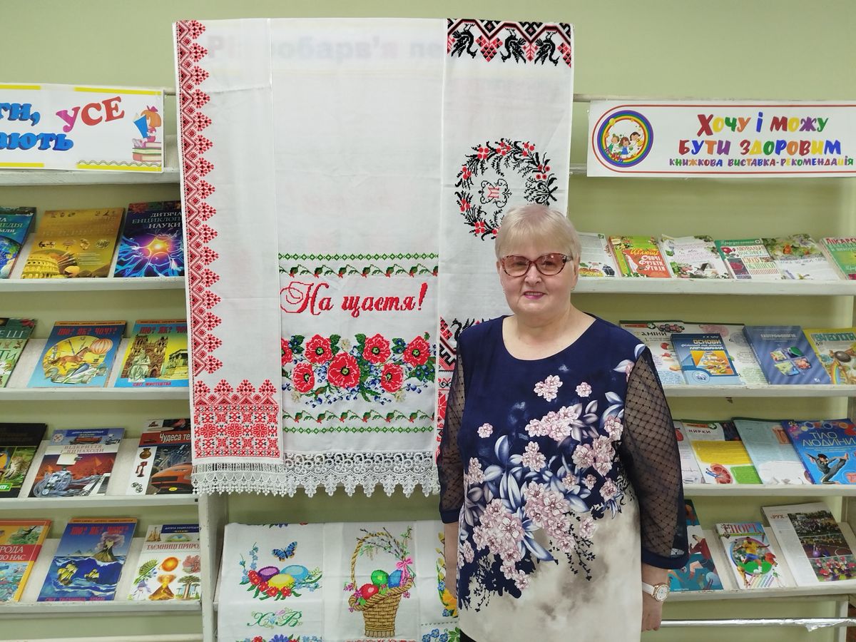 Напередодні Великодня читальна зала бібліотеки-філії №10 Центральної бібліотеки Полтавської міської територіальної громади замайоріла різнобарвною вишивкою. Майстриня Надія Пастух із міста Родинське Покровського району Донецької області, яка з початком повномасштабного вторгнення росії переїхала до Полтави, уже понад 20 років займається вишиванням.