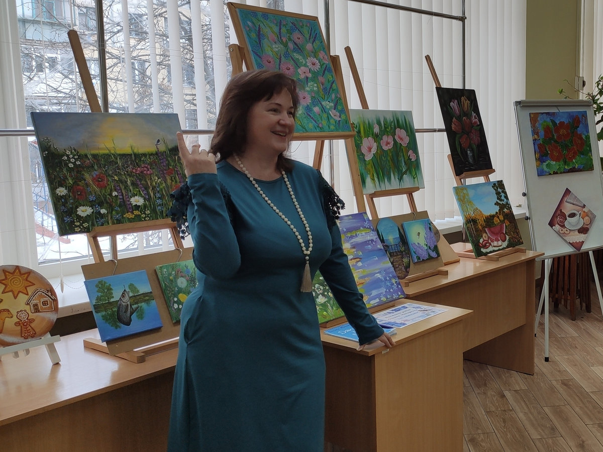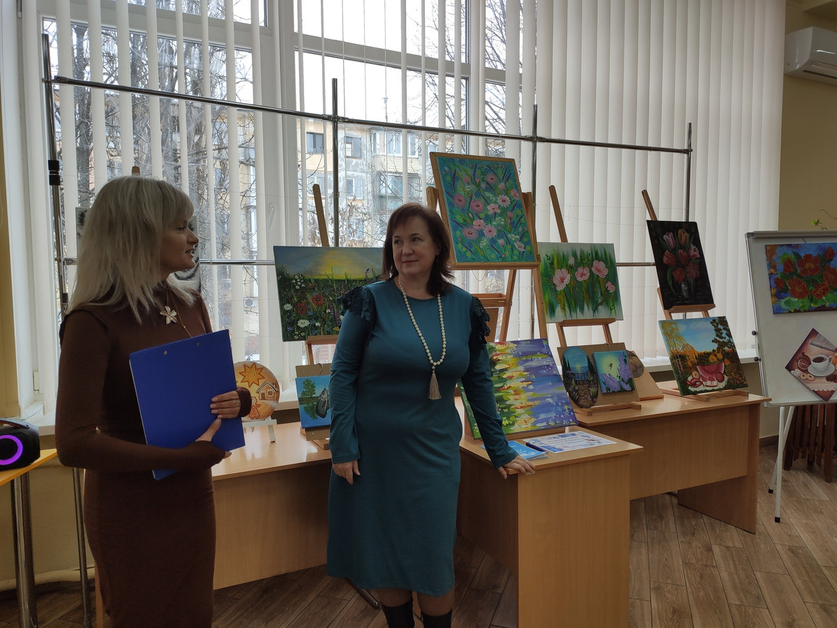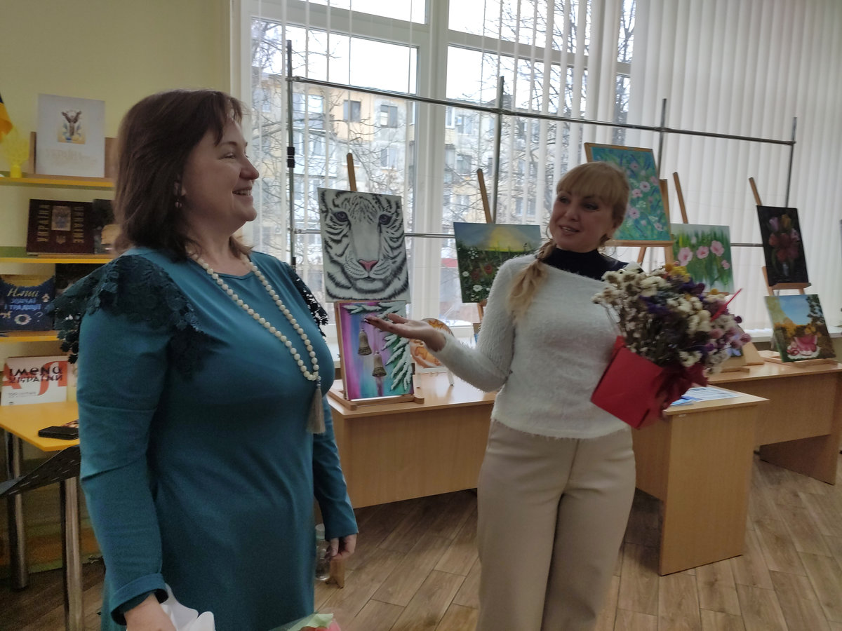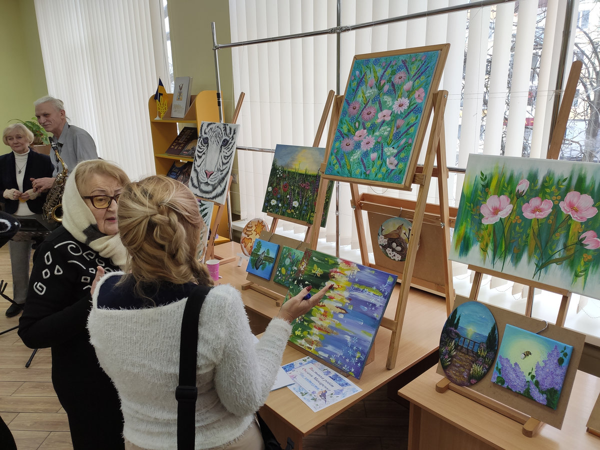 Візуальним центром, навколо якого оберталися в цей день поезія та музика, стала виставка картин «Час квітнути» талановитої полтавки Оксани Макаренко. Вона розповіла про свій шлях у творчість, яка не обмежується лише малярством, оскільки авторка є ще й вправною майстринею - її ляльки-мотанки живуть в багатьох країнах світу, а всі бажаючі можуть навчитися цього на майстер-класах, які проводить пані Оксана. «Бо все те, що пов’язане з мистецтвом, примножує радість і красу, допомагає відпочити душею та відновитися», - говорить авторка.