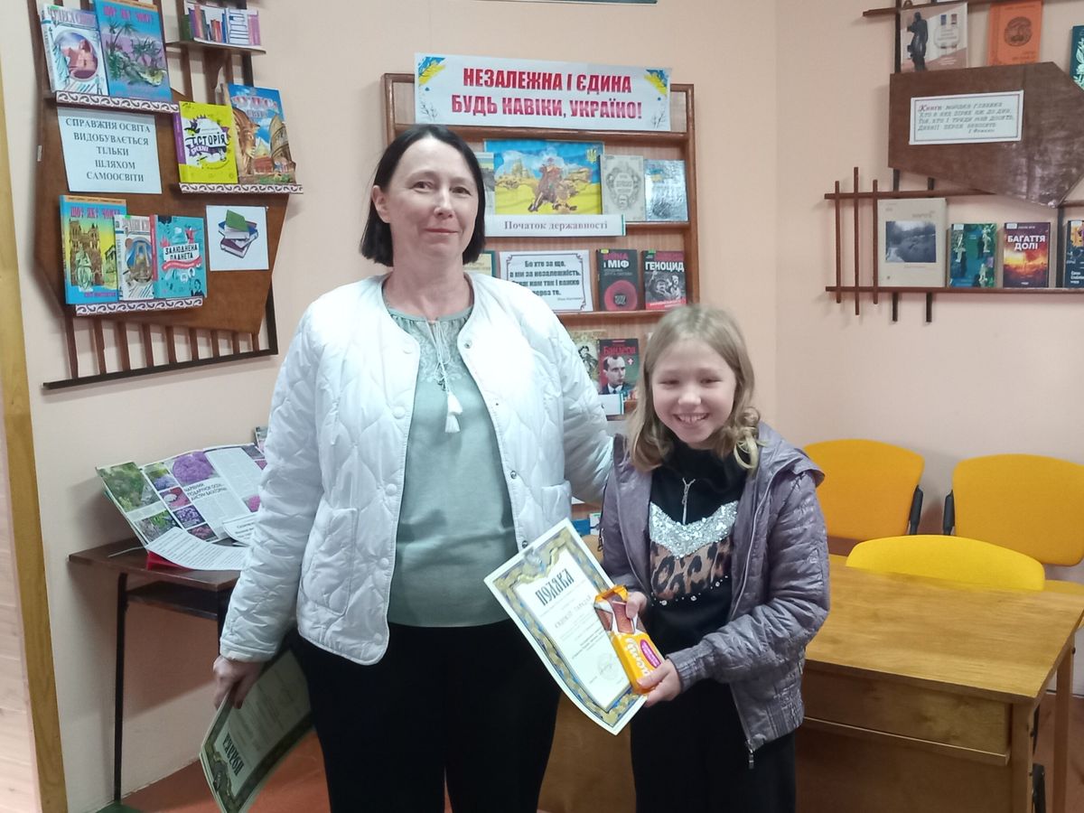 P.S. Учасницям конкурсу Каті Писаренко й Ані Пісковій, які не змогли минулої неділі бути присутніми на урочистостях, їхні заслужені нагороди у бібліотеці вручать пізніше.