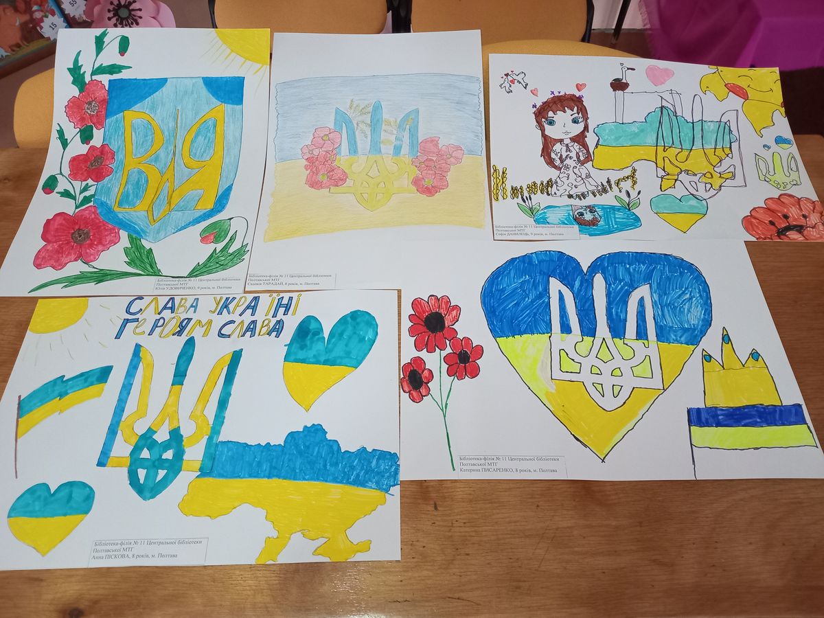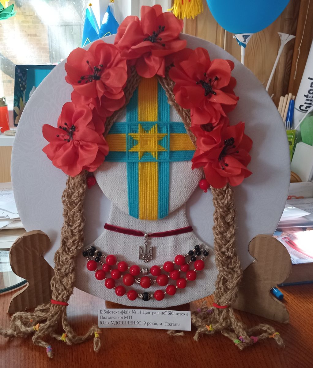 Команда конкурсанток від бібліотеки-філії №11 — Аня Піскова, Катя Писаренко, Софія Данилець, Євдокія Тарадай, Юля Удовиченко взяли участь у номінації «Малюнок», а Юля ще й у номінації «Аплікація», створивши дуже красиву роботу «Мотанка». Й хоча їхні роботи не пройшли для участі у підсумковому, третьому турі конкурсу, бібліотекарі вдячні їм за те, що вони знають і поважають символіку України, люблять свою Батьківщину. А також надзвичайно вдячні і їхнім батькам, за правильне виховання своїх дітей.