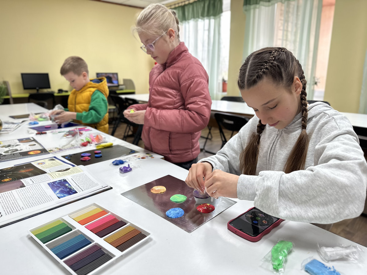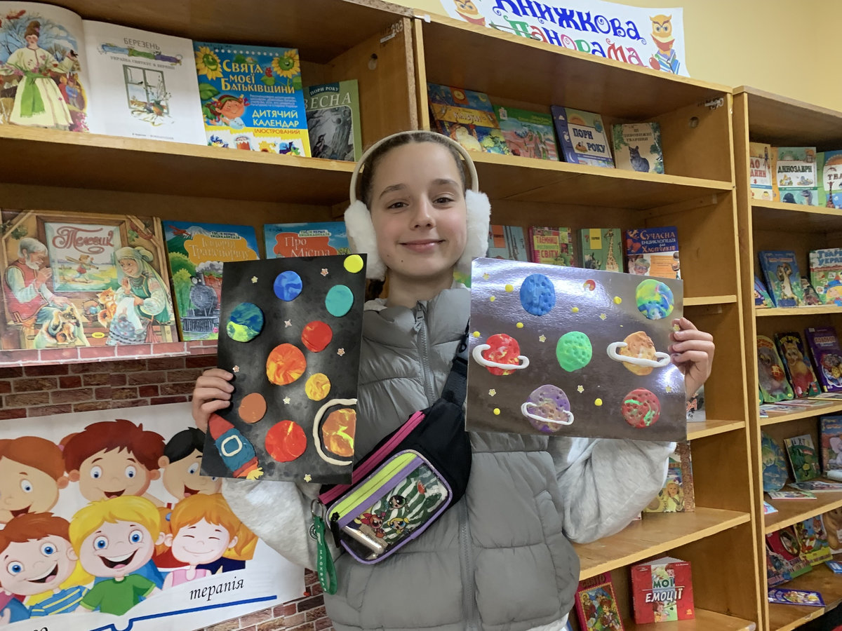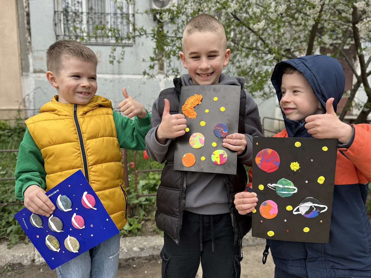 Кульмінацією заходу став творчий майстер-клас: кожна дитина створила власну модель Сонячної системи з повітряного пластиліну та картону. У цих роботах поєдналися фантазія, уважність до деталей і щире захоплення темою космосу. Кожна модель стала унікальним маленьким Всесвітом, створеним дитячими руками.