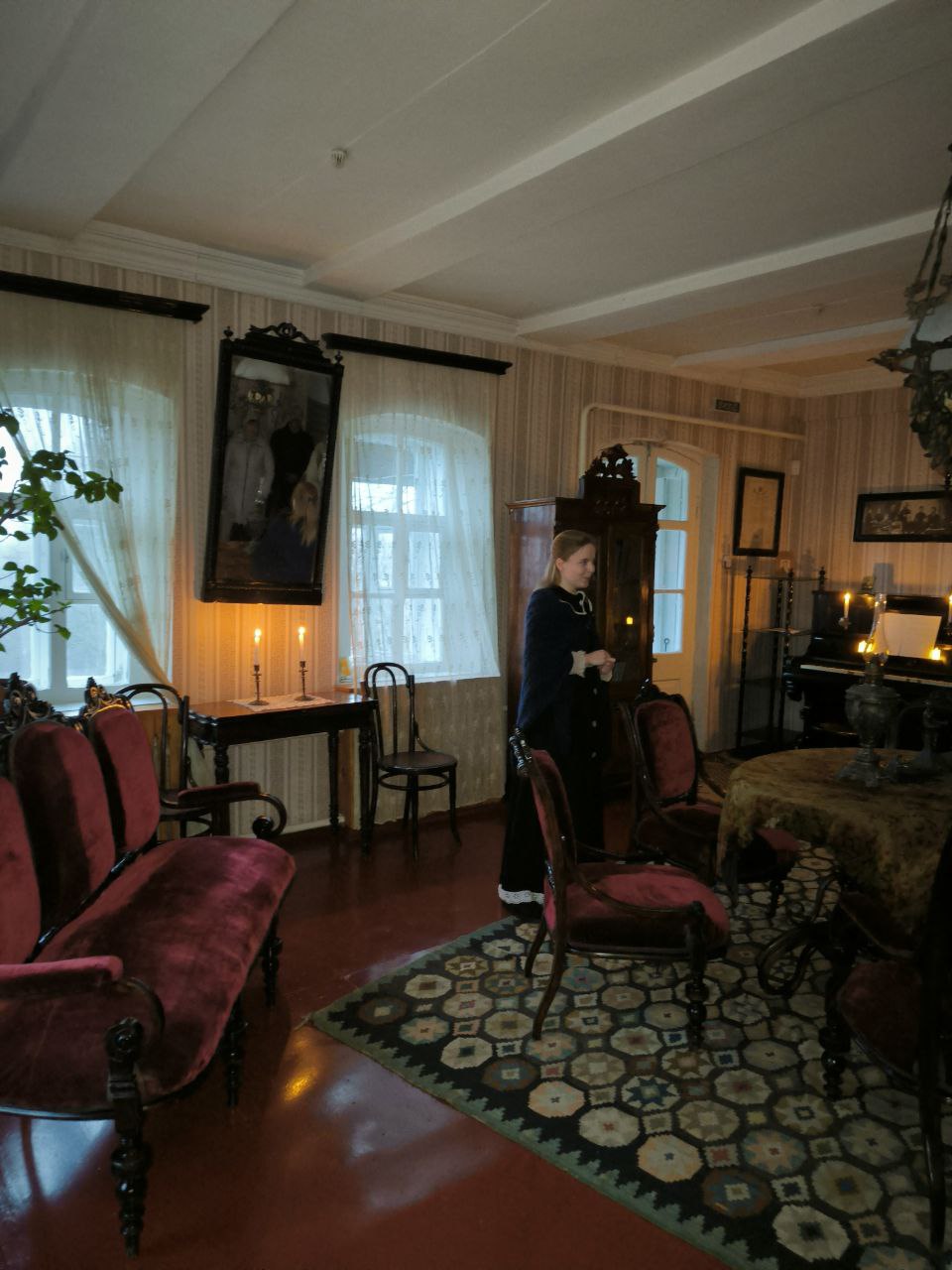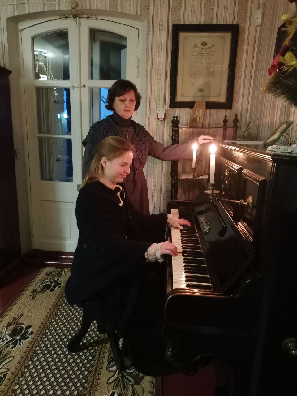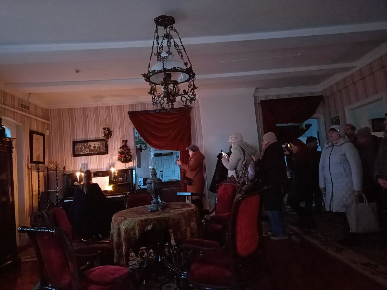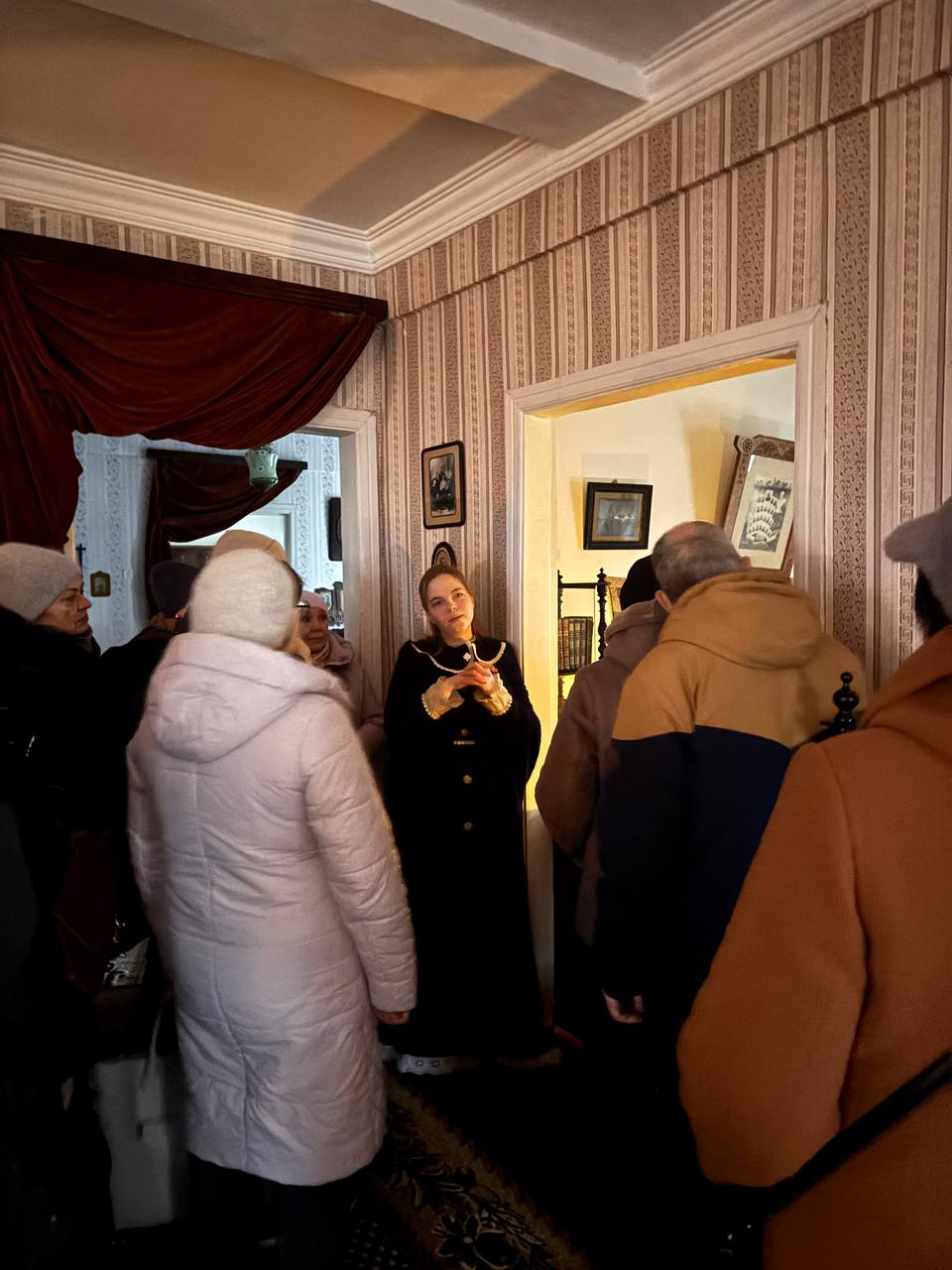 У музеї Панаса Мирного відбулася особлива подія – костюмована різдвяна екскурсія при свічках, що подарувала гостям відчуття справжньої подорожі у часі. У напівтемряві залів, освітлених лише теплим мерехтінням свічок і м’яким зимовим сяйвом, експозиція заграла новими барвами, а кожен крок відкривав сторінки минулих століть. Ніжні мелодії фортепіано наповнювали простір спокоєм і вишуканістю, підкреслюючи камерність і чарівність вечора. Історія переплелася з традиціями, а атмосфера наповнилася магією Різдва.