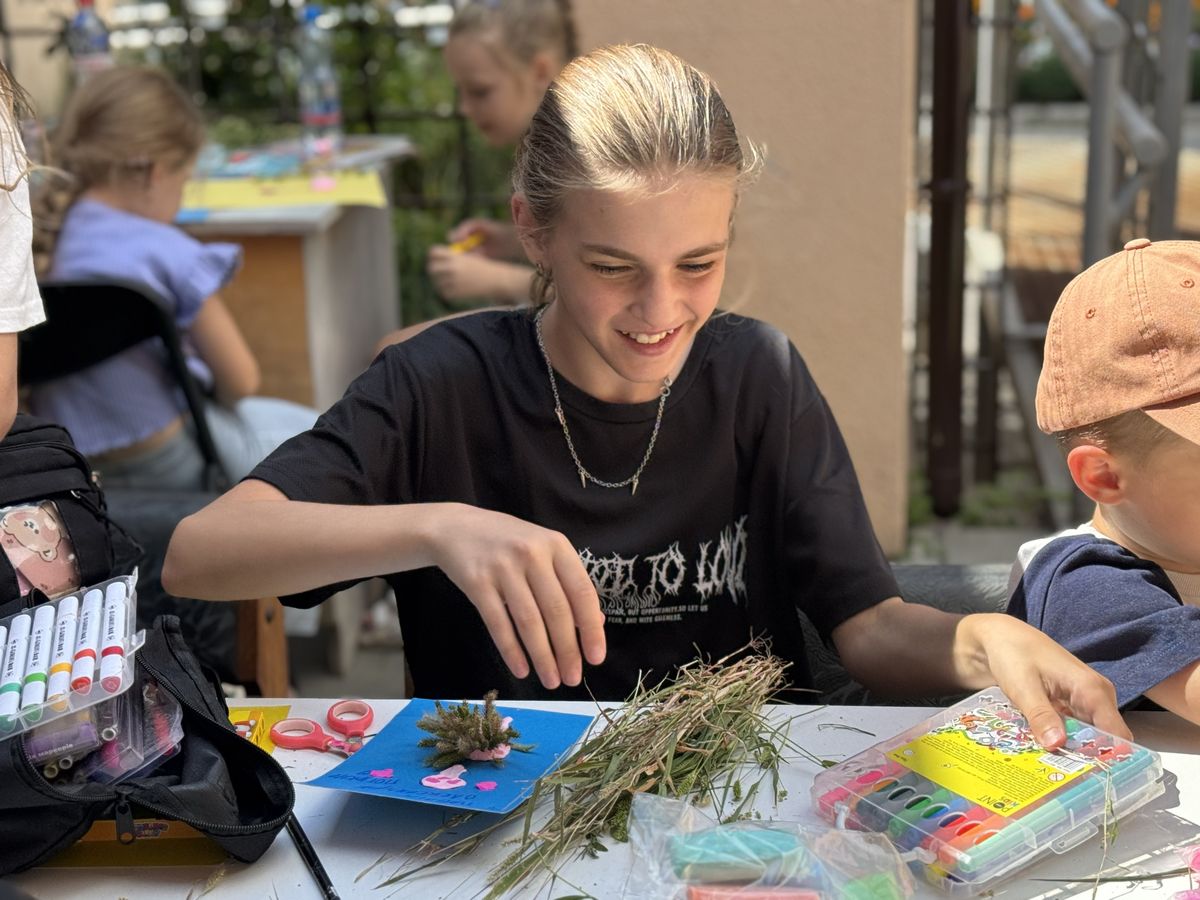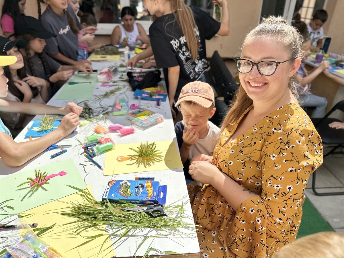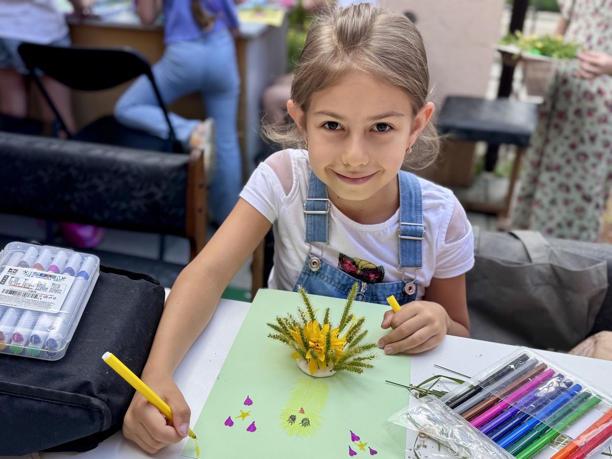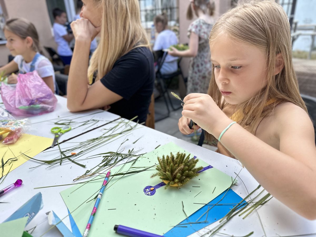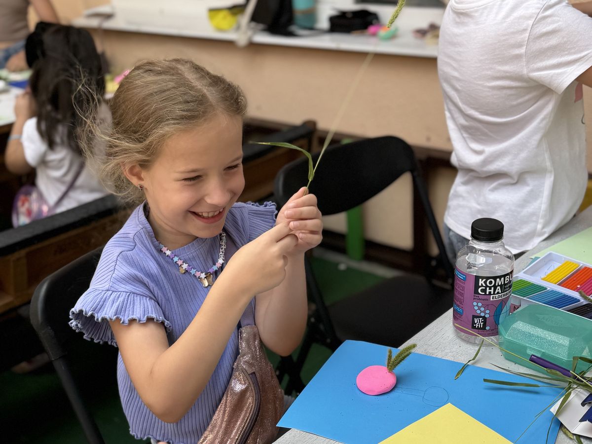 У затишному бібліотечному дворику панувала особлива атмосфера — сміх, радість і аромат свіжих трав та квітів. Разом із дітьми ми вирушили у світ фантазії й створювали унікальних пташок з незвичайних матеріалів: травинок, пелюсток та повітряного пластиліну.