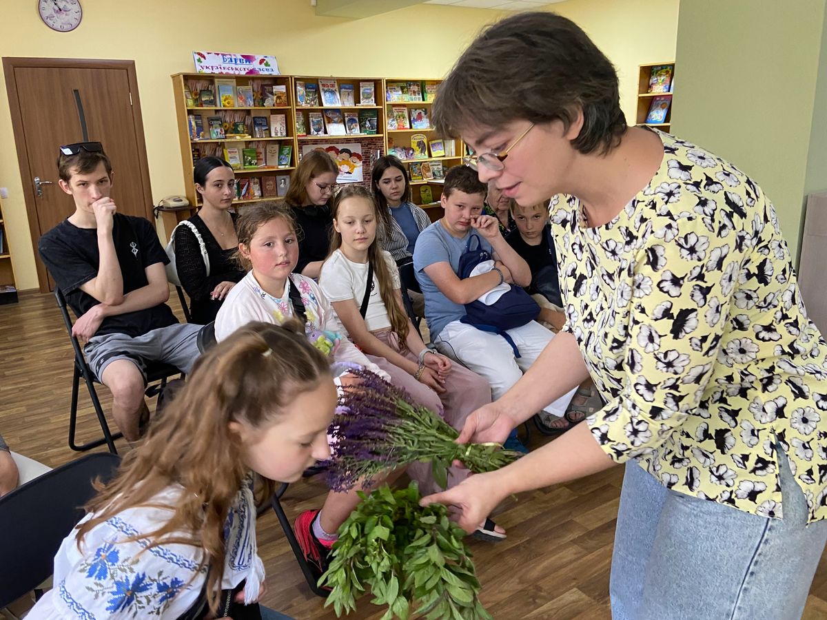 Учасники дізналися про символіку купальського вінка — оберегу, який здавна вважали не лише прикрасою, а й магічним атрибутом. Говорили про те, як плели вінки з різнотрав’я, які квіти обирали і що вони символізували, а також чому вінки пускали на воду. Діти слухали з цікавістю, а дорослі з ностальгією згадували, як самі колись плели вінки в бабусиному саду.