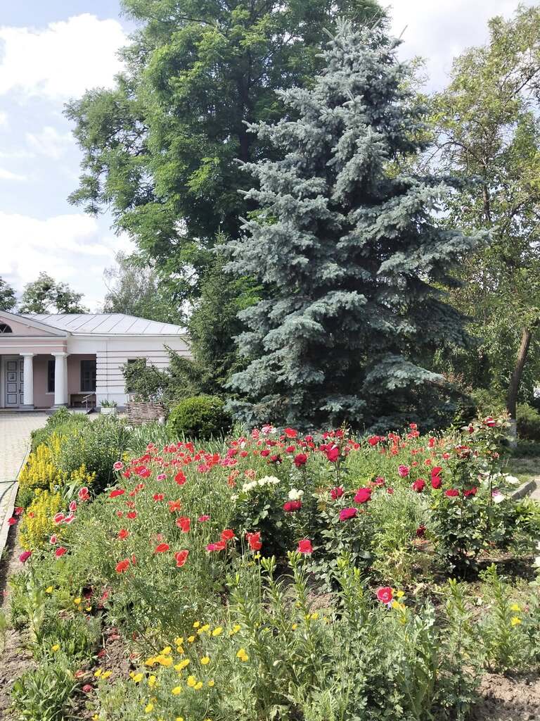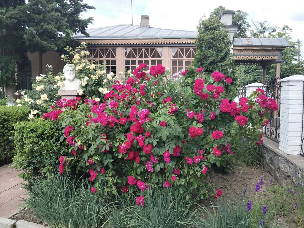 Територія Музею В.Г. Короленка зараз просто потопає у квітах, даруючи незабутні враження. Розкішні червоні троянди вражають своєю елегантністю та насиченим кольором, а ніжні білі та рожеві троянди додають саду особливої романтики.