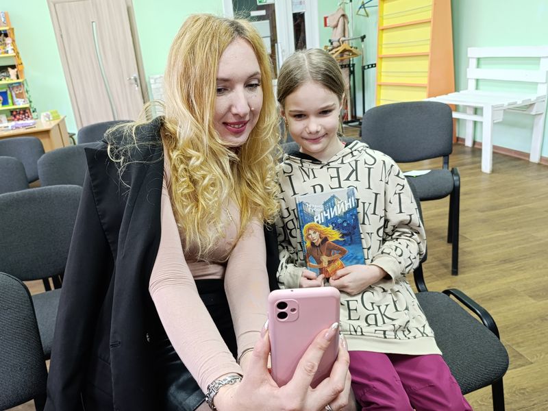 Пані Тетяна підготувала дуже цікавий психологічний тест «Долонька», що може стати в пригоді і дорослим, і дітям. По завершенню зустрічі наші юні читачі довго не відпускали письменницю, роблячи з нею дружні селфі.