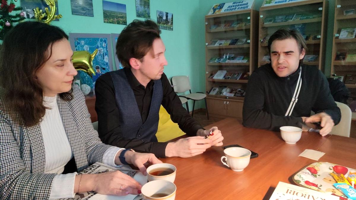У День Святого Миколая в бібліотеці-філії №2 відбулося літературне чаювання «Творчого ковчегу Полтава». Приємне спілкування нових учасників, переважно молоді, стало справжнім подарунком для всіх присутніх.