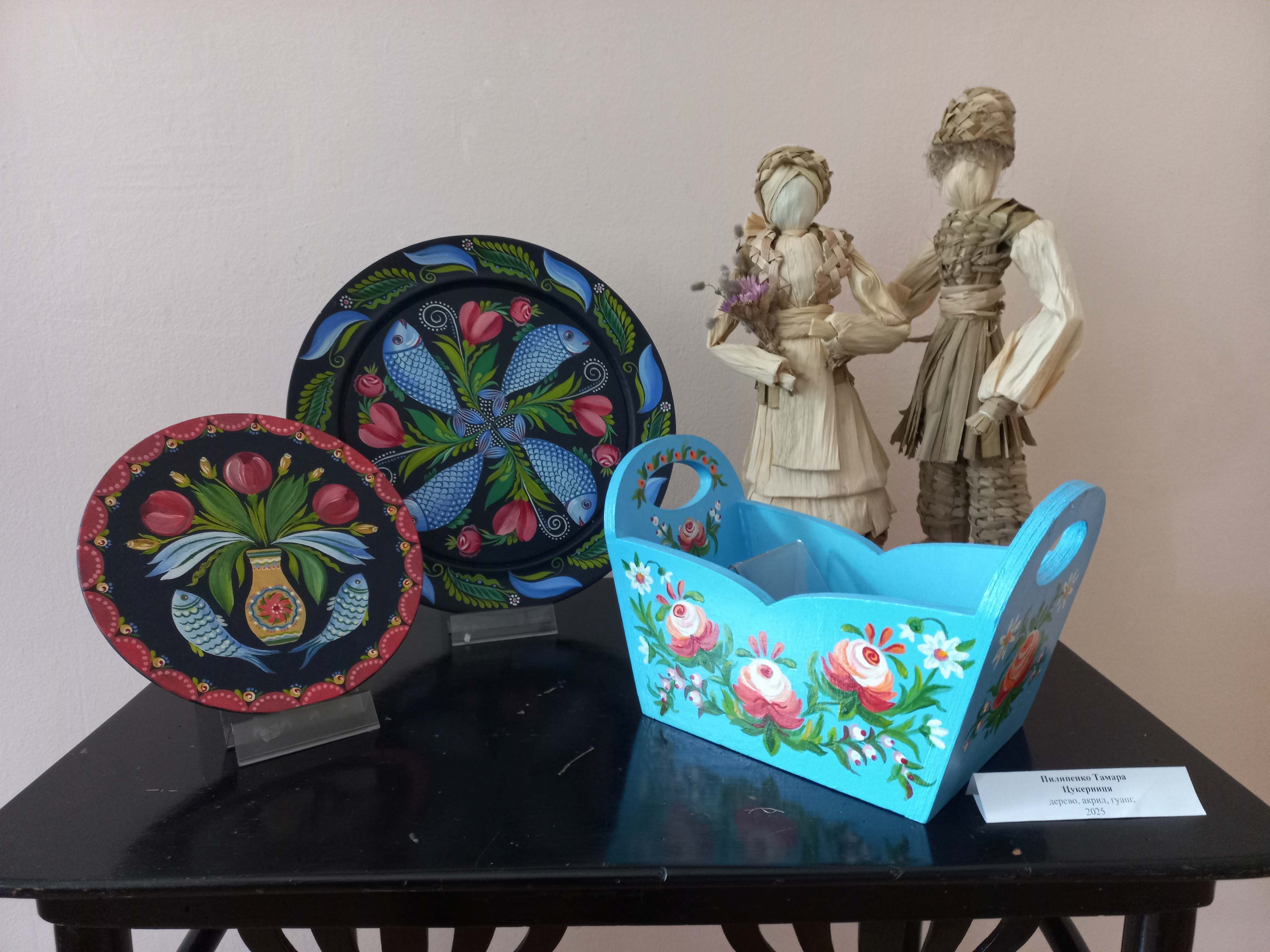 В експозиції виставки представлено близько сорока робіт. Роботи виконані у різних техніках, традиційних для декоративно-прикладного мистецтва Полтавщини. Це і декоративний розпис, і лялькарство, і вироби з природніх матеріалів.