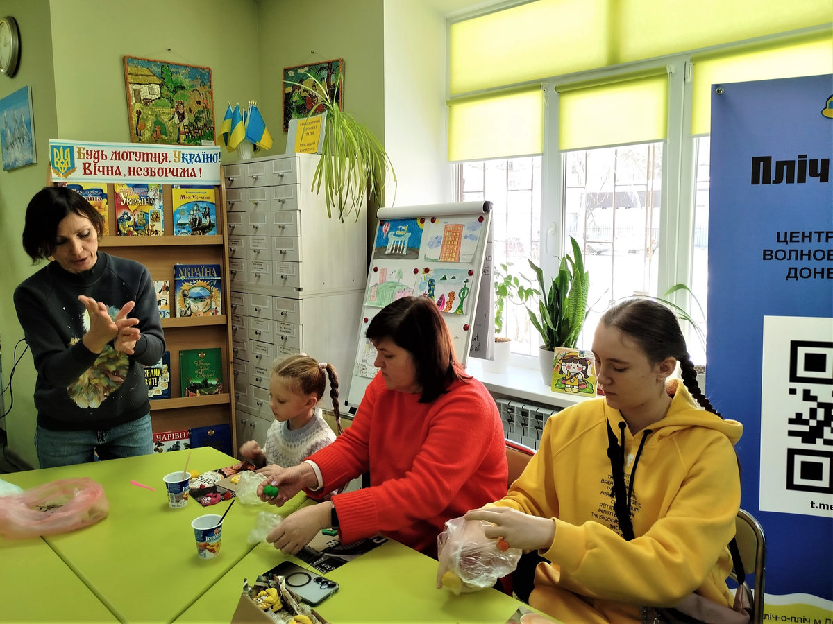 В бібліотеці-філії №10 Центральної бібліотеки Полтавської міської територіальної громади для дітей ВПО з Донецької області був проведений затишний творчий майстер-клас «Котик з солоного тіста». Дітлахи з допомогою дорослих виготовляли казкового котика.