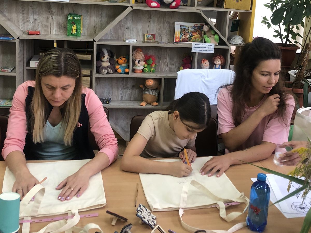 Захід продовжився творчою майстернею, де всі присутні розписували унікальний оберіг та модний аксесуар одночасно - еко-шопер у стилі рослинної магії.