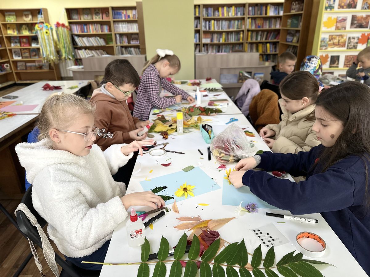 Осінь щедро подарувала свої барви — від золотистого до багряного, і кожен листочок став частиною неповторного витвору. Маленькі майстри з натхненням підбирали форми й кольори, перетворюючи їх на метеликів, жуків, бабок та інших чарівних створінь.