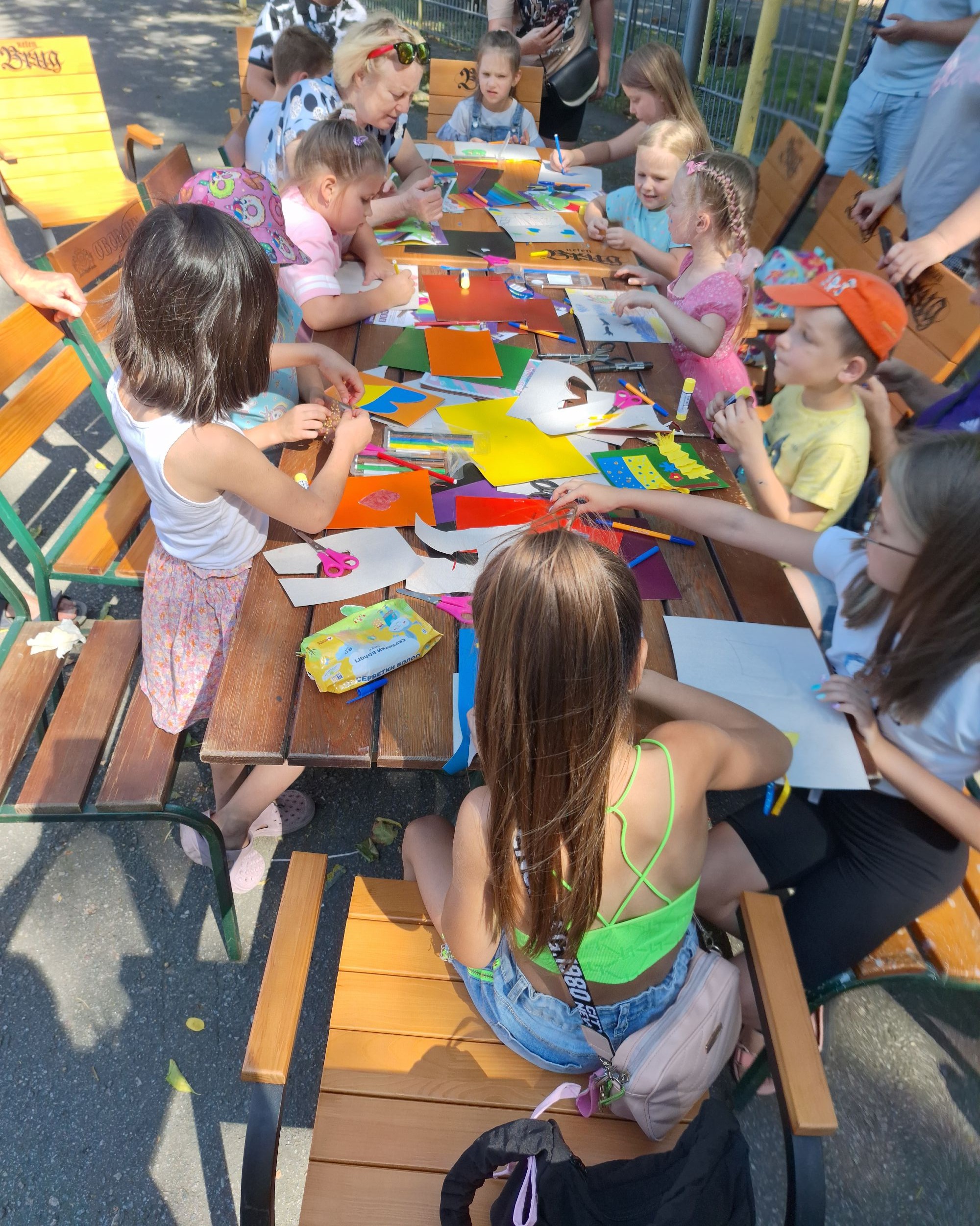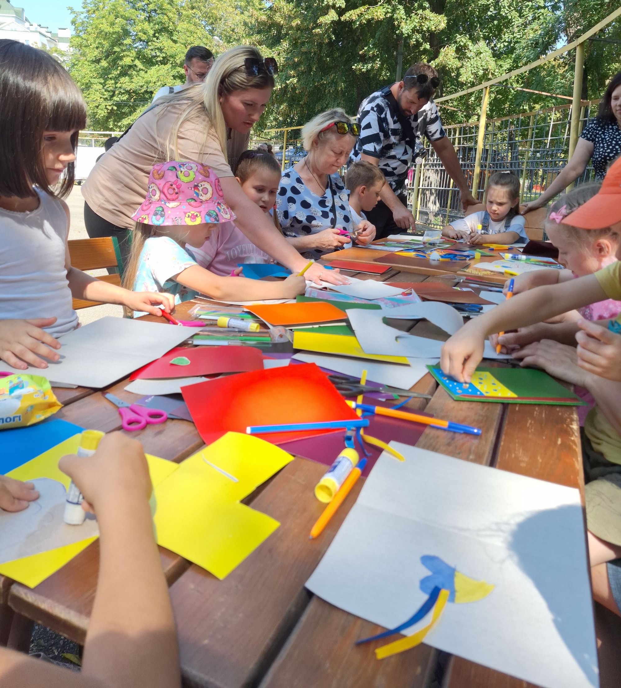 До Дня Державного Державного Прапора України та Дня Незалежності України у Полтавському міському парку культури та відпочинку «Перемога» відбувся майстер-клас із виготовлення патріотичних листівок для захисників.