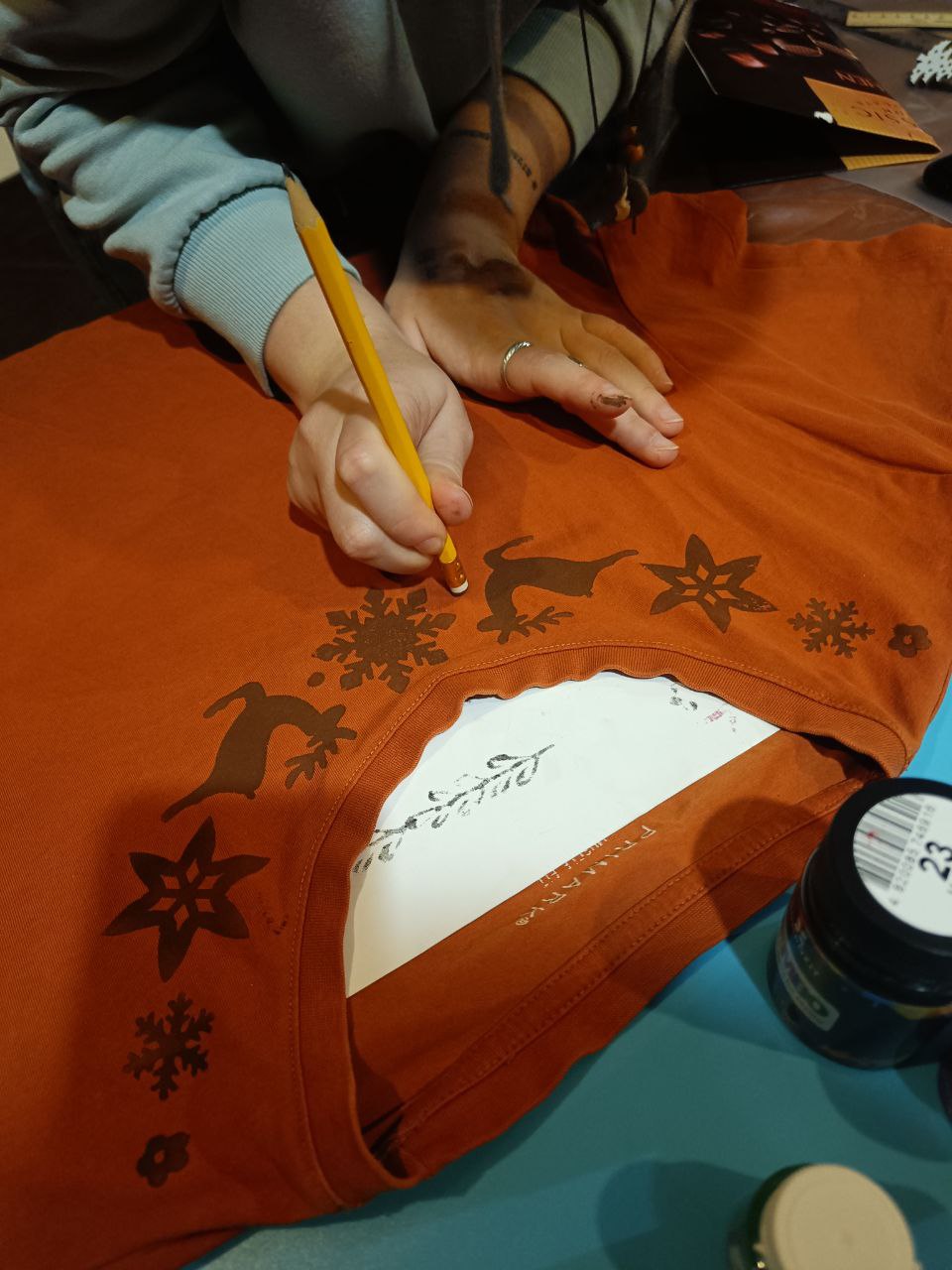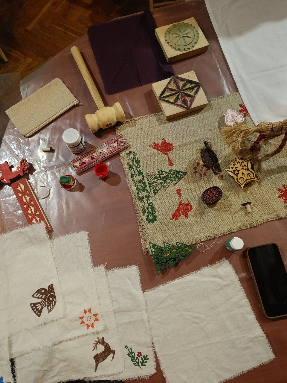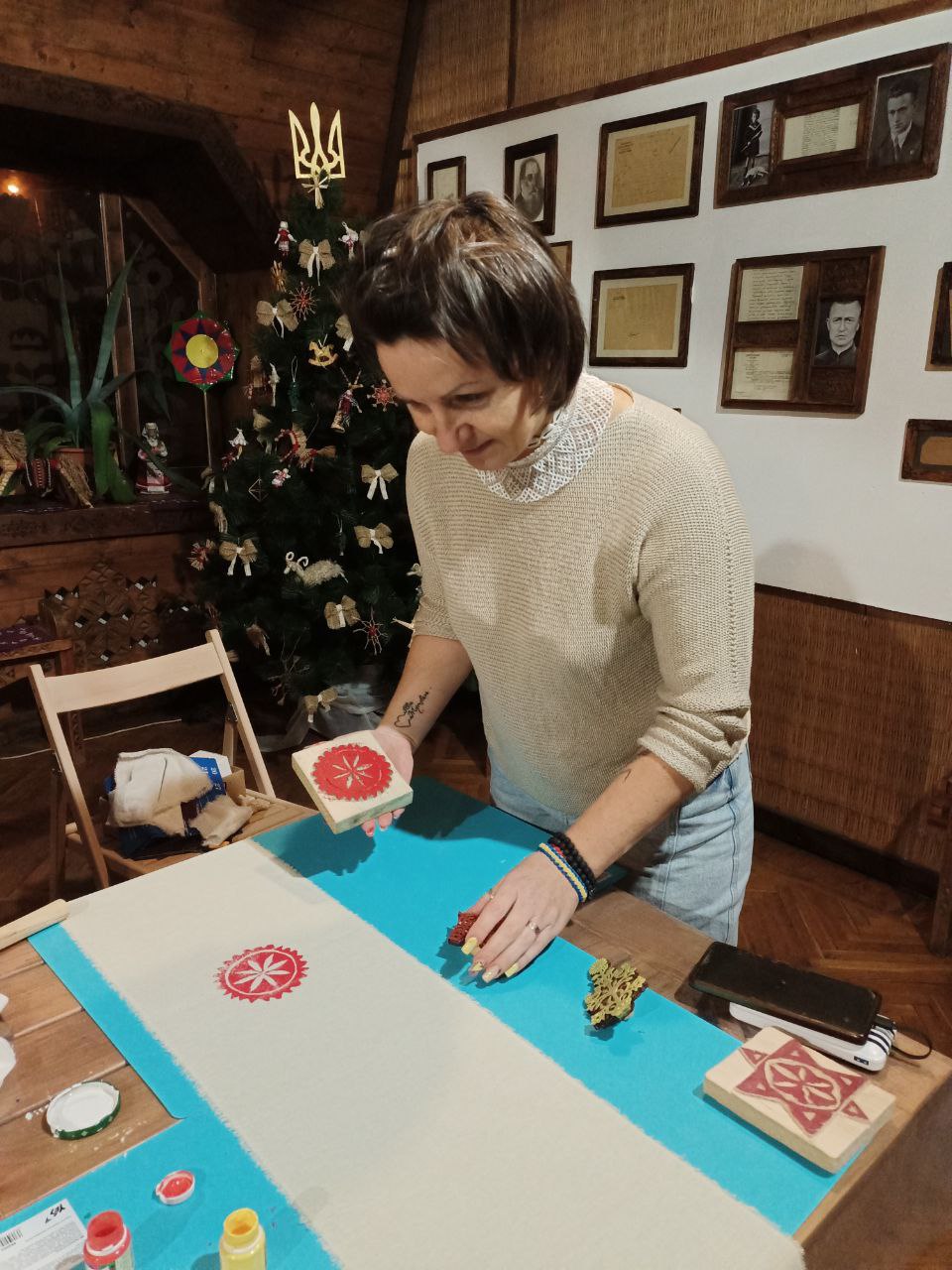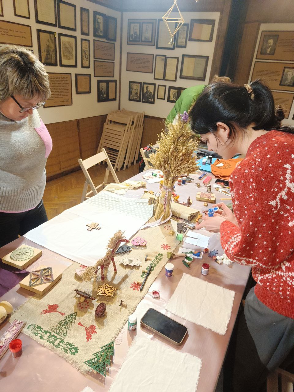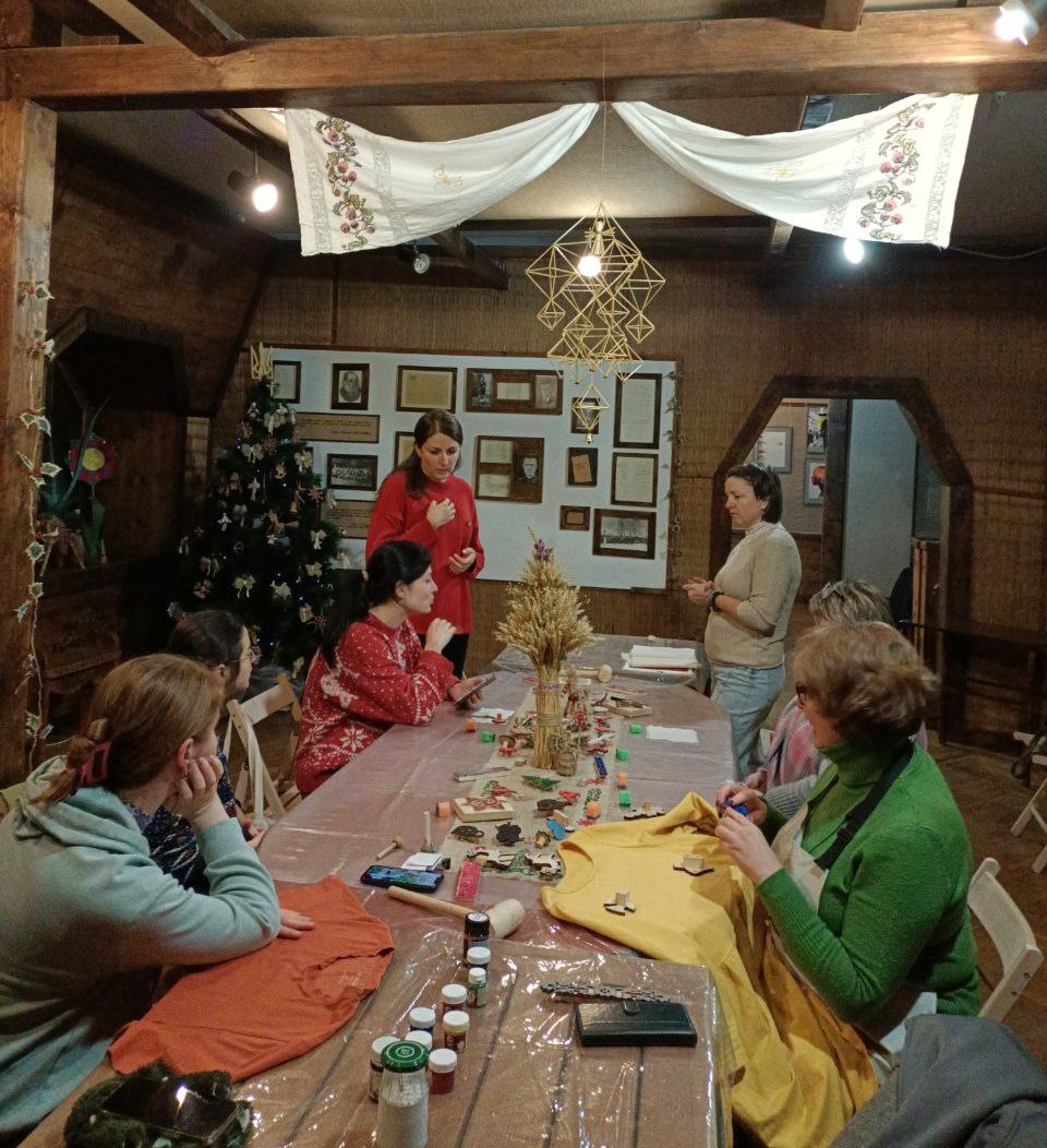 У теплій творчій атмосфері учасники майстер-класу занурилися у світ традиційного мистецтва і познайомилися із давньою технікою вибійки, що має глибоке коріння в українській культурі, власноруч наносили орнаменти, експериментували із кольорами і ритмом візерунків, створюючи авторські новорічні композиції.