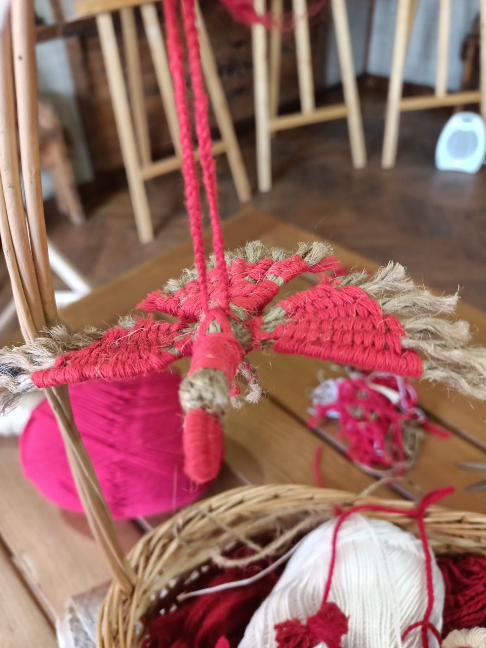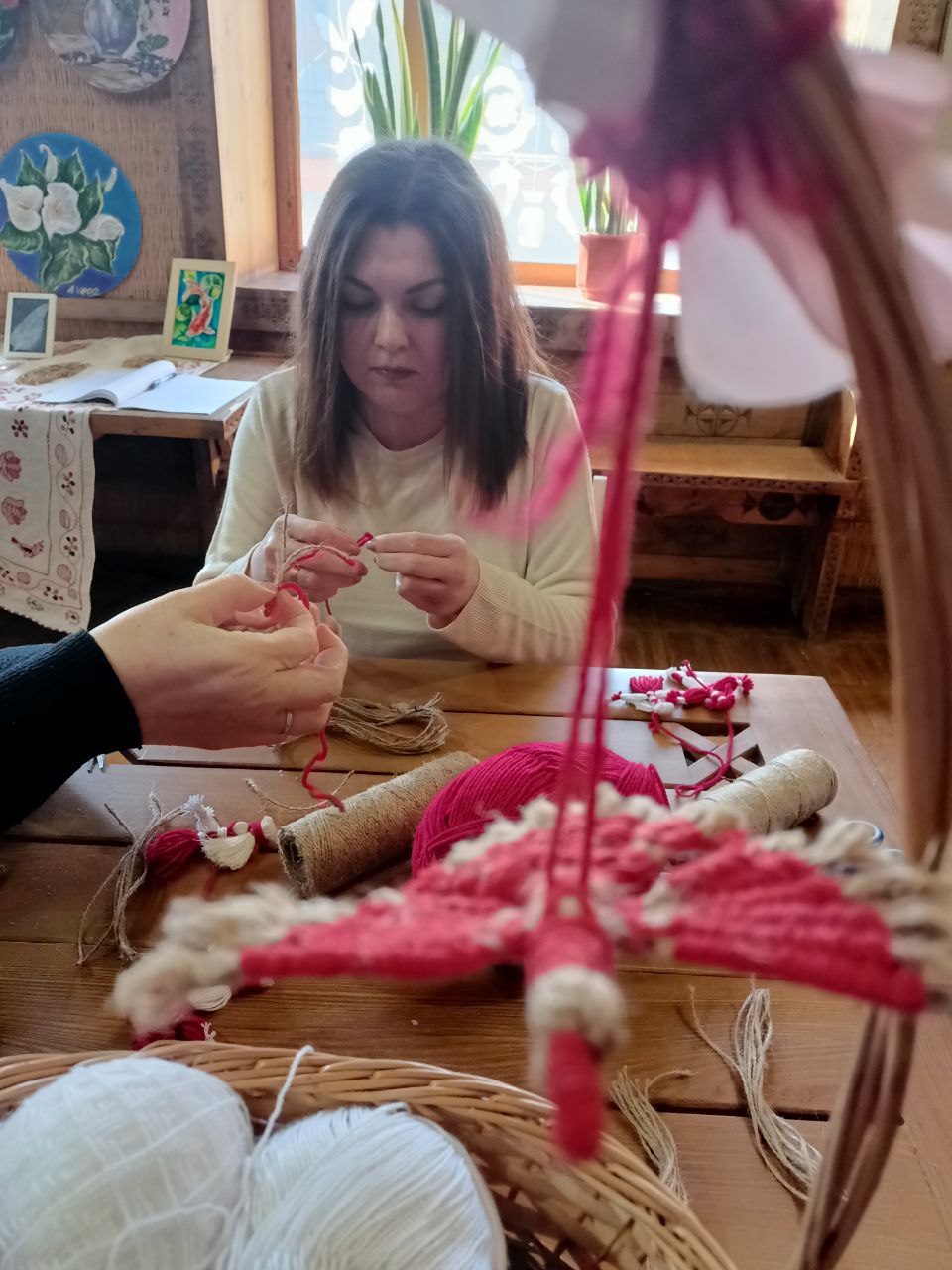 Під час мастер-класу кожен мав змогу створити з червоних і білих ниток пару закоханих та пташку-мотанку.