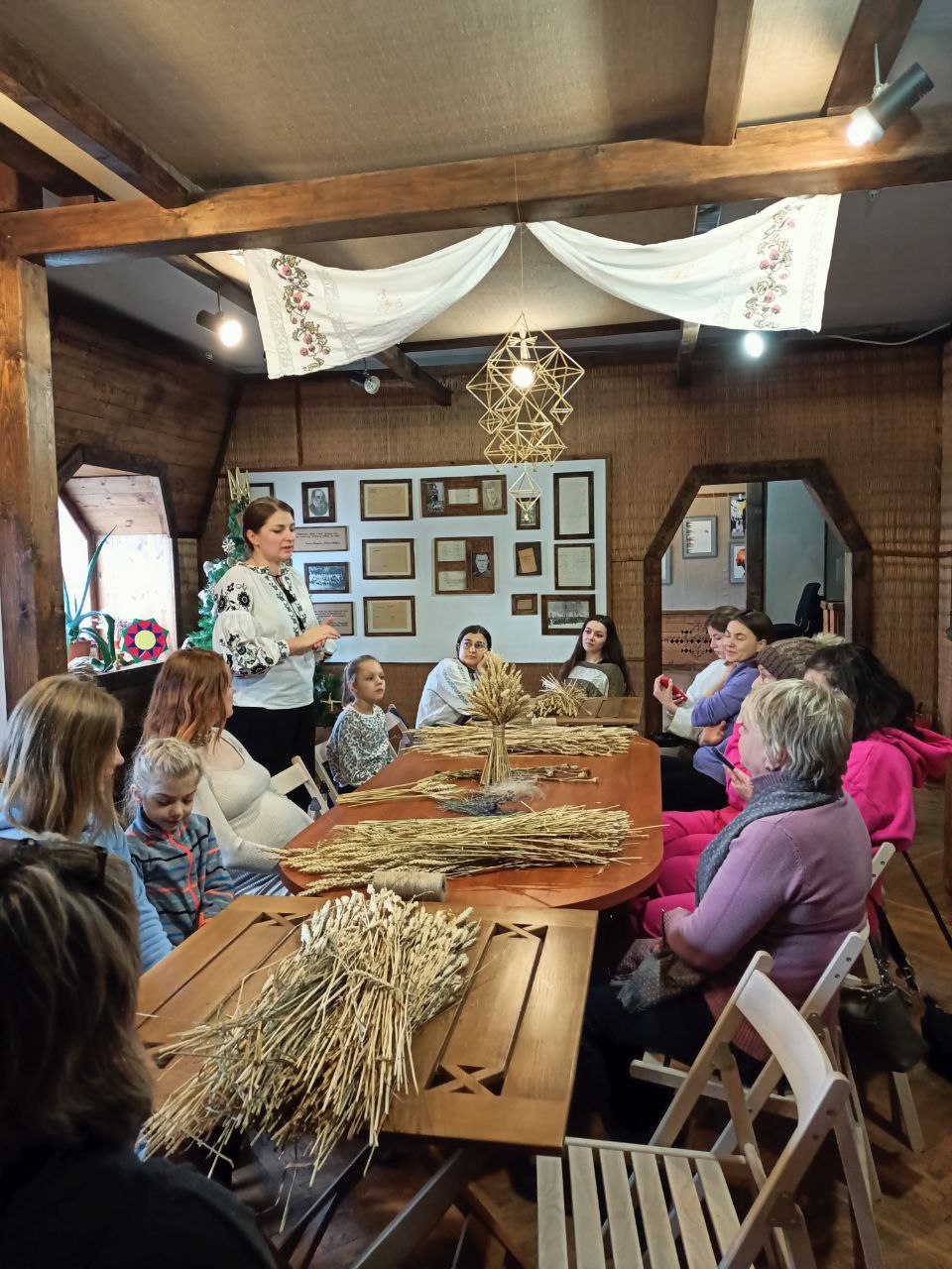 У затишній світлиці музею Панаса Мирного відбувся майстер-клас, на якому учасники власними руками створили традиційну українську різдвяну прикрасу Дідуха.
