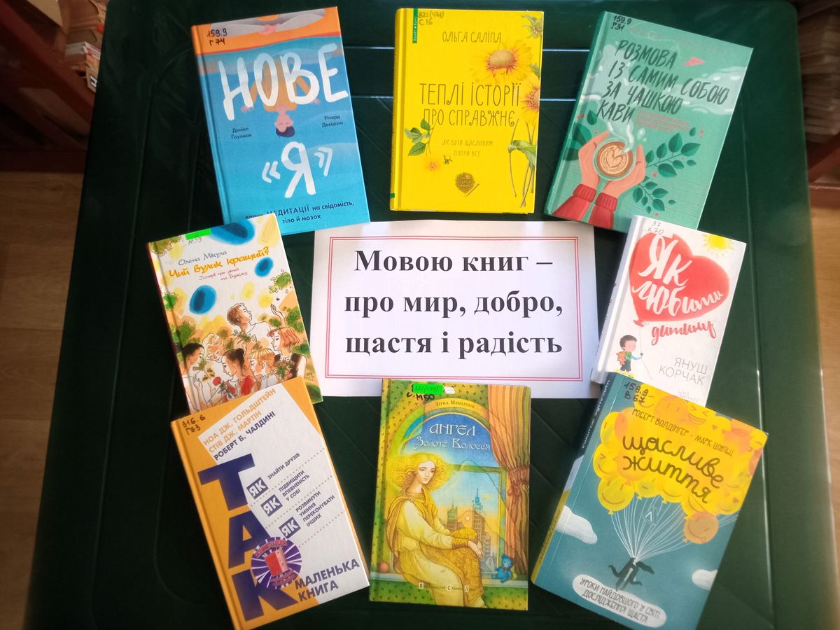 Всі учасники та їхні батьки мали можливість познайомитися з книжковою викладкою «Мовою книг – про мир, добро, щастя і радість».
