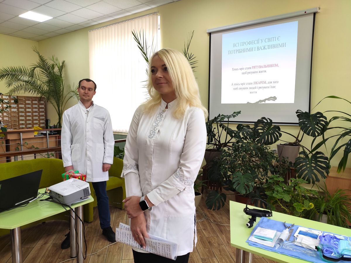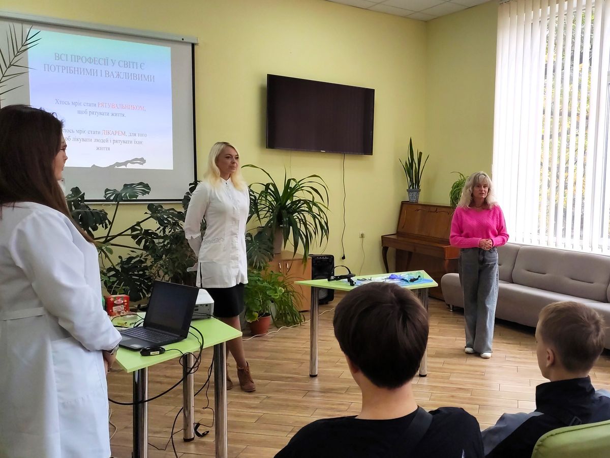 Діти слухали з великим зацікавленням, активно ставили запитання, дізнавалися про найцікавіші та найскладніші моменти з практики лікарів. Не менш зворушливо прозвучали історії школярів про своїх батьків, які також працюють у медицині — це створило особливу атмосферу довіри та тепла.