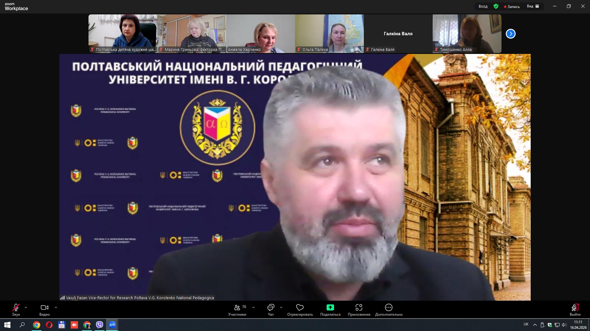 Сьогодні, 16 квітня 2026 року, викладачі Полтавської дитячої художньої школи імені Святослава Пашинського Валентина Тарасенко, Андрій Тарасенко, Ірина Пашинська, Мирослава Фісун, Наталія Дігтяр на чолі з директором Іриною Коноплею та заступником директора з навчальної роботи Оксаною Семер'яновою взяли онлайн участь у роботі міжнародного кросмистецького конгресу "Полікультурна багатовимирність - шлях до діалогу та розвитку" на платформі ZOOM. Представлені педагогічними працівниками доповіді, що побудовані на досвіді роботи, будуть видані у збірці за результатами конференції.