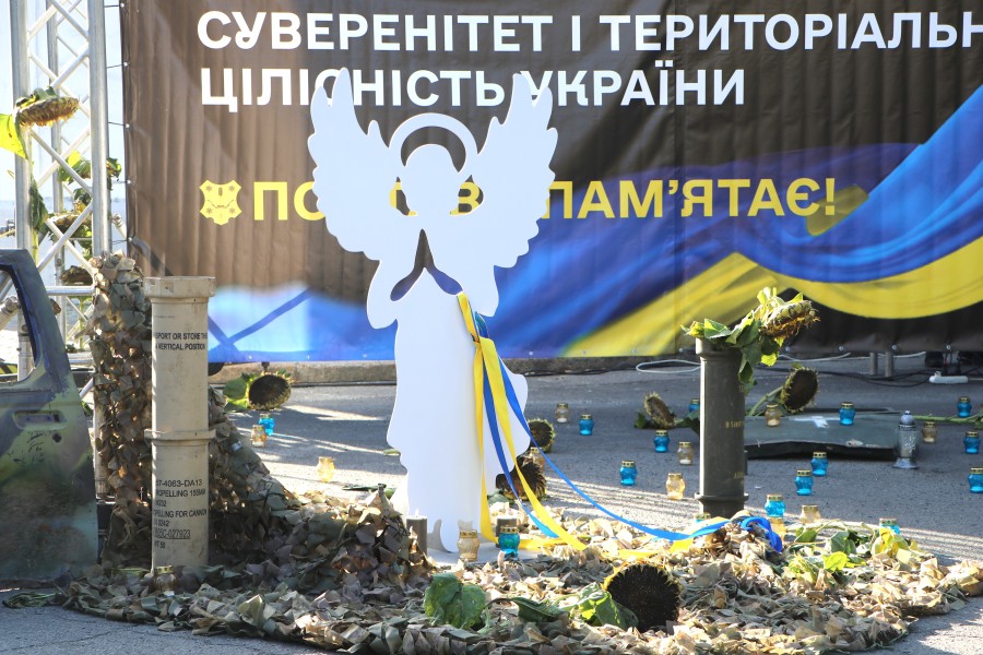 Біля Свято-Успенського кафедрального собору Православної Церкви України облаштували інсталяцію з ангелом та соняхами, які є символом Дня пам'яті.