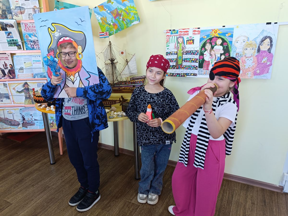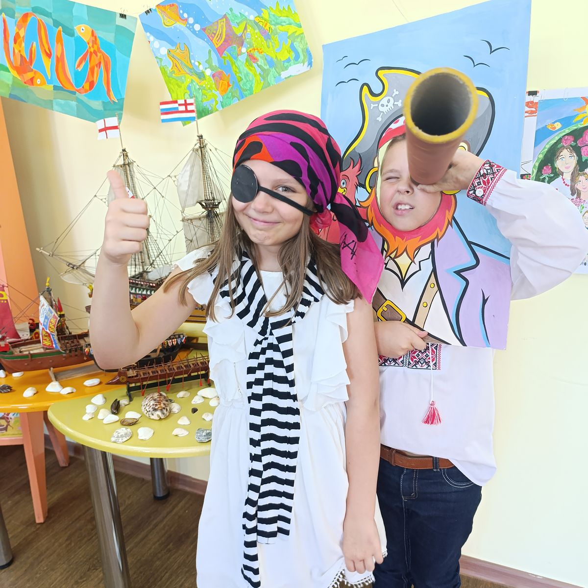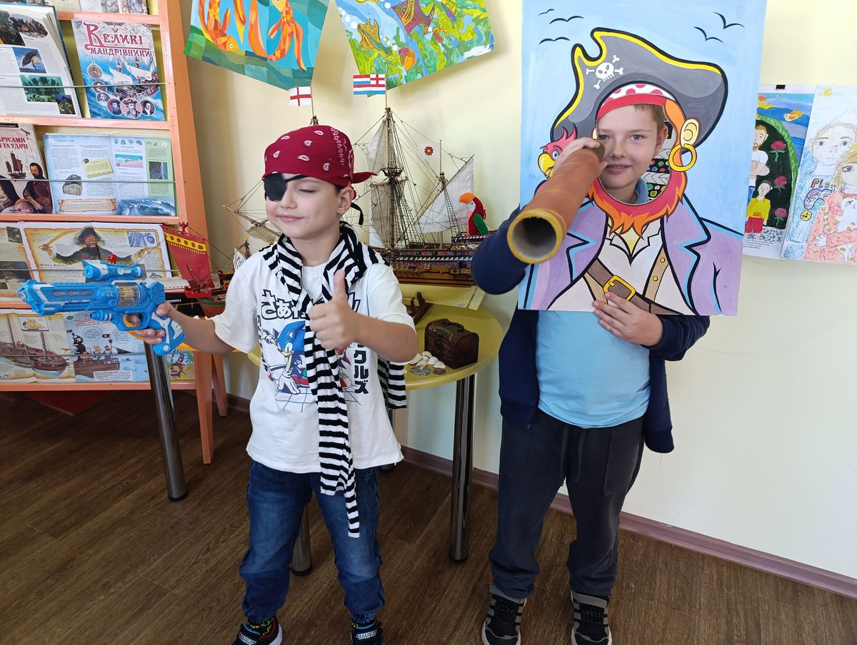 Особливий інтерес викликала розмова про морських розбійників – піратів. Бібліотекарі продемонстрували макети кораблів, виготовлених читачами. А справжній ажіотаж викликала пропозиція зробити «піратське селфі»! Діти із захопленням перевтілилися у відважних мореплавців.