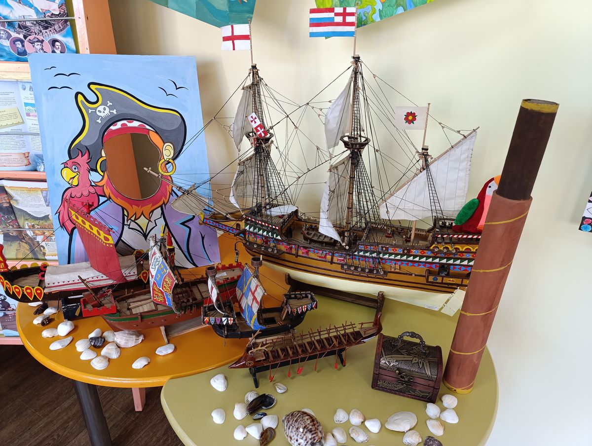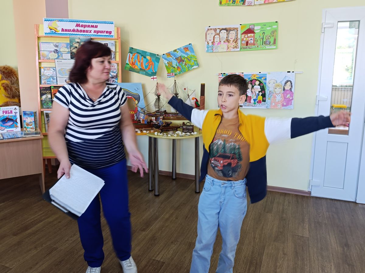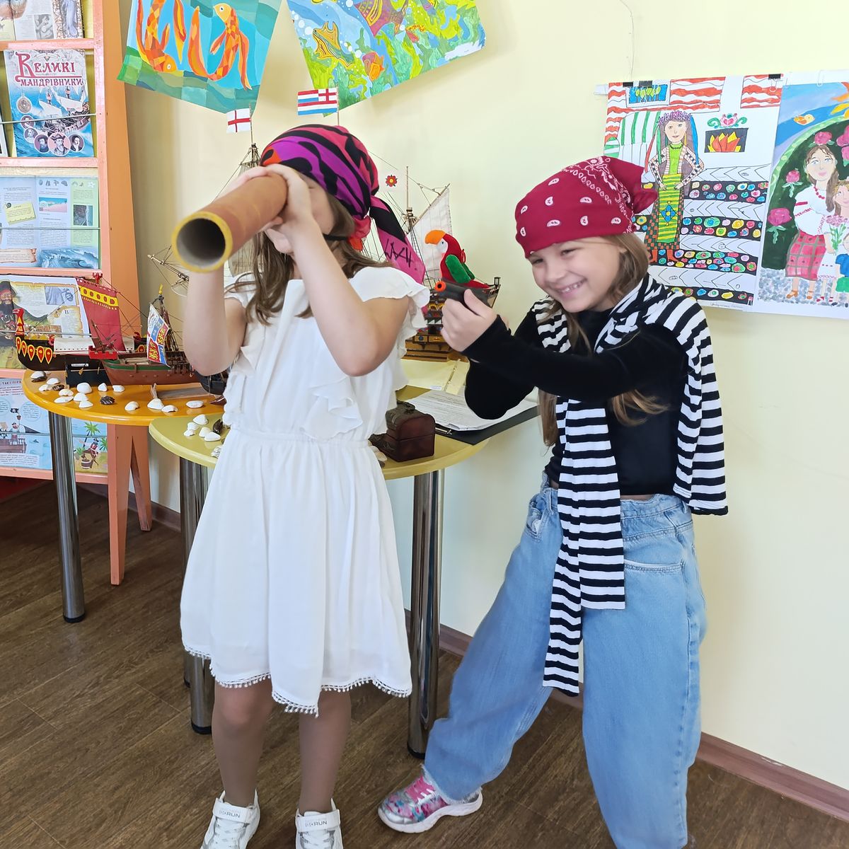 Особливий інтерес викликала розмова про морських розбійників – піратів. Бібліотекарі продемонстрували макети кораблів, виготовлених читачами. А справжній ажіотаж викликала пропозиція зробити «піратське селфі»! Діти із захопленням перевтілилися у відважних мореплавців.