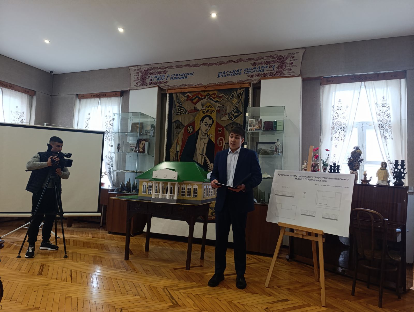 На музейній презентації Денис Петруня розповів про народження самої ідеї, про роботу над її матеріальним втіленням, певні труднощі в реалізації проєкту. Але завдяки фаховим педагогам-наставникам Ліцею №2 «Подільський» ПМР задум учня не тільки здійснився, але й отримав високу оцінку у реалізації проєкту «Архітектурна Полтавщина».