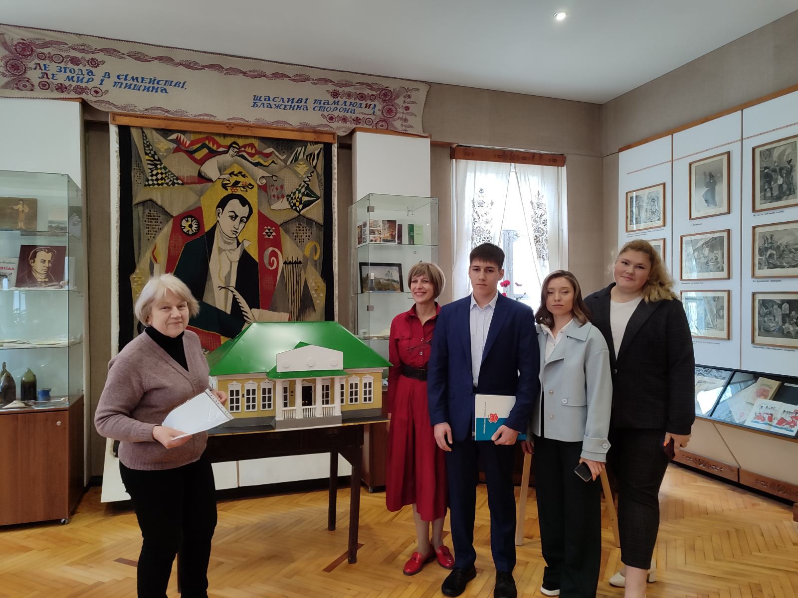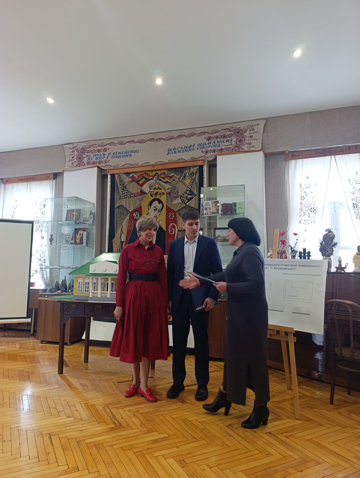 Присутня на музейному івенті «Невіддільний від мене…» директор Департаменту культури та молоді Полтавської міської ради Олена Ромас нагородила Дениса Петруню та вчителя-методиста вищої категорії з технологій та трудового навчання Раїсу Дмитрівну Марцинковську почесними грамотами і побажала здійснення нових творчих задумів. А щасливі музейці подарували сертифікат на безкоштовне відвідування VR-квесту «У пошуках скарбу Івана Котляревського.