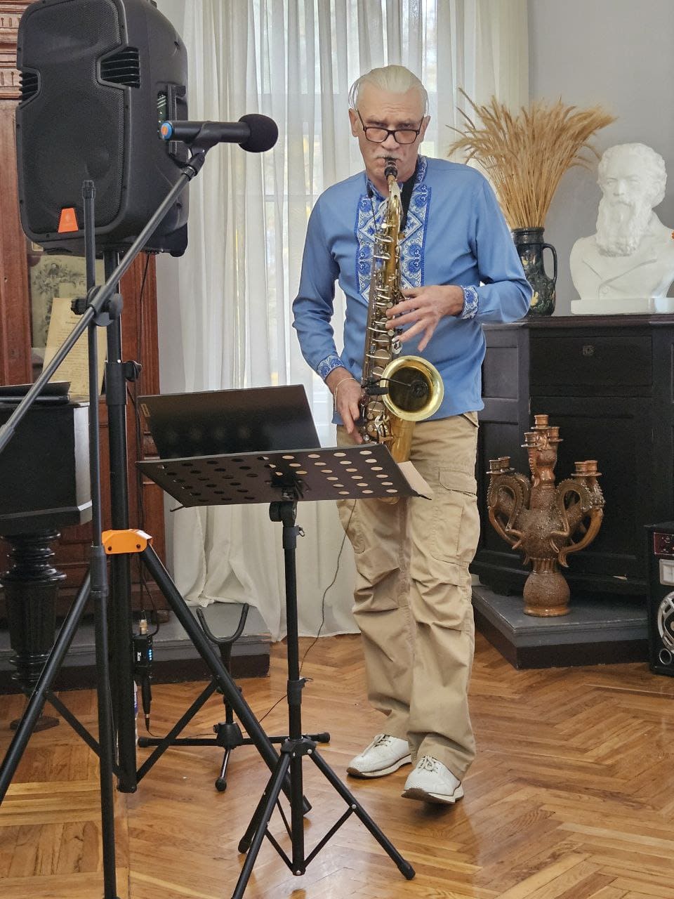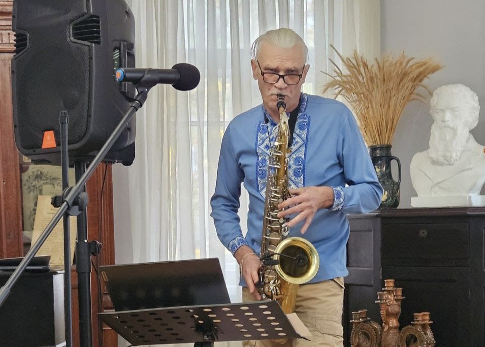 Цього вечора до музею завітав Віктор Перетятько — людина, яка своїм прикладом доводить: ніколи не пізно почати спочатку. Після багаторічної роботи на підприємстві критичної інфраструктури, уже на заслуженому відпочинку, він вирішив здійснити свою давню мрію — навчитися грати на саксофоні.