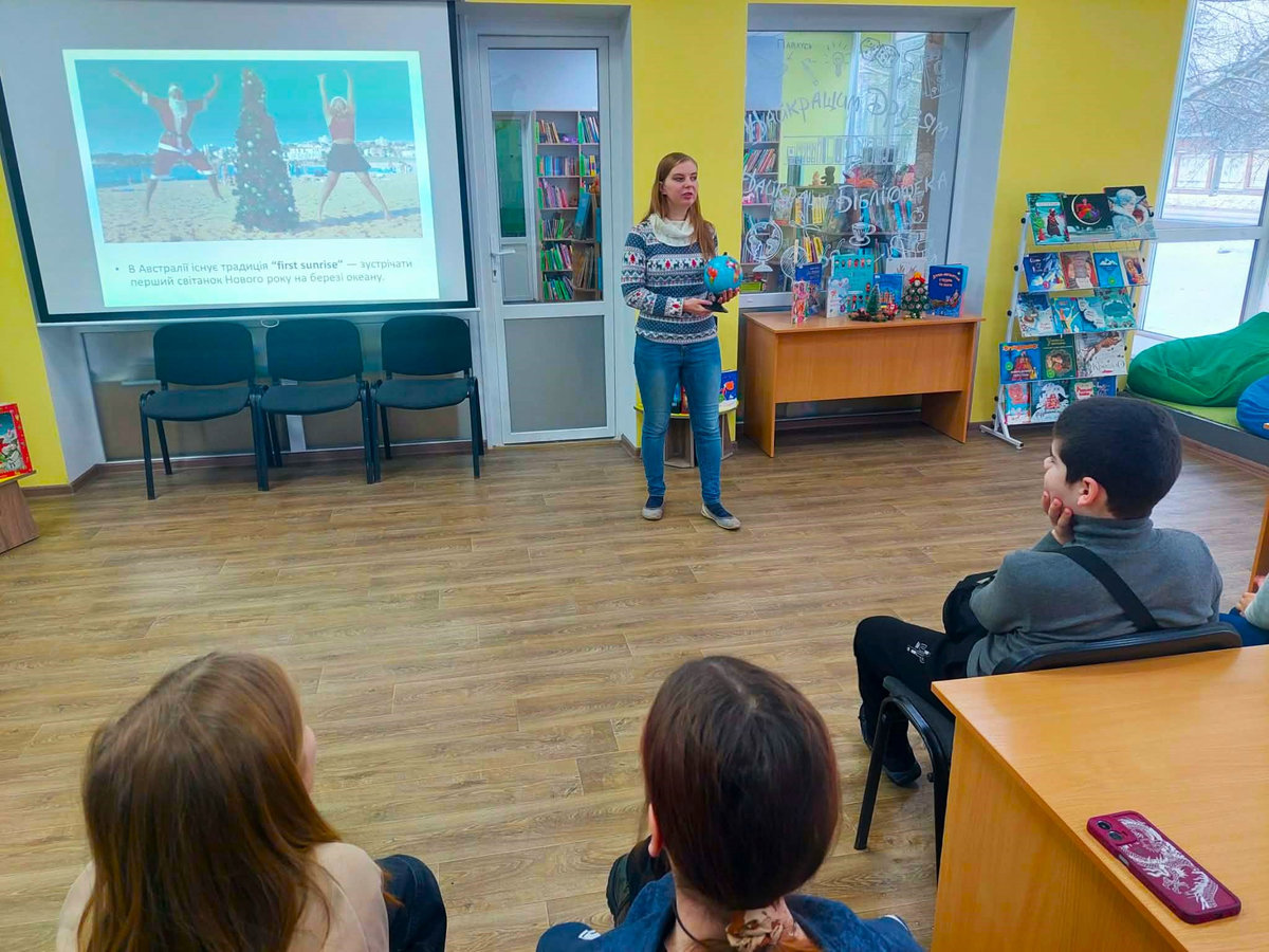 У бібліотеці-філії №9 разом з учнями 3-х та 6-х класів школи №5 ми говорили про особливості святкування Нового року в Україні та різних країнах світу. Від українських щедрівок, Маланки, кози й посівання на Василя — до грецького новорічного пирога з прихованою монеткою та навіть австралійського Нового року на пляжі.