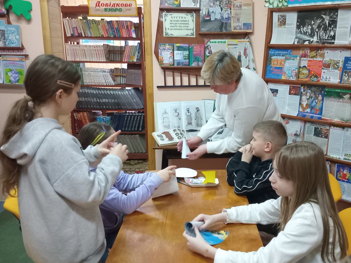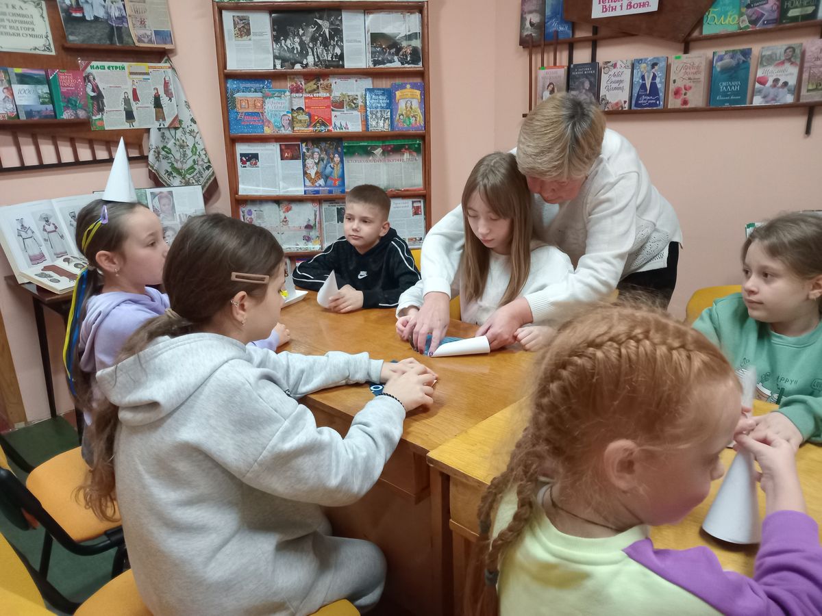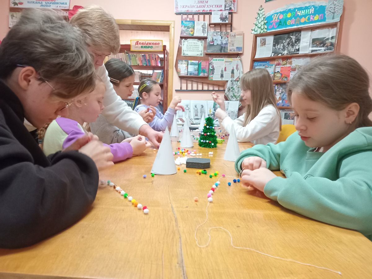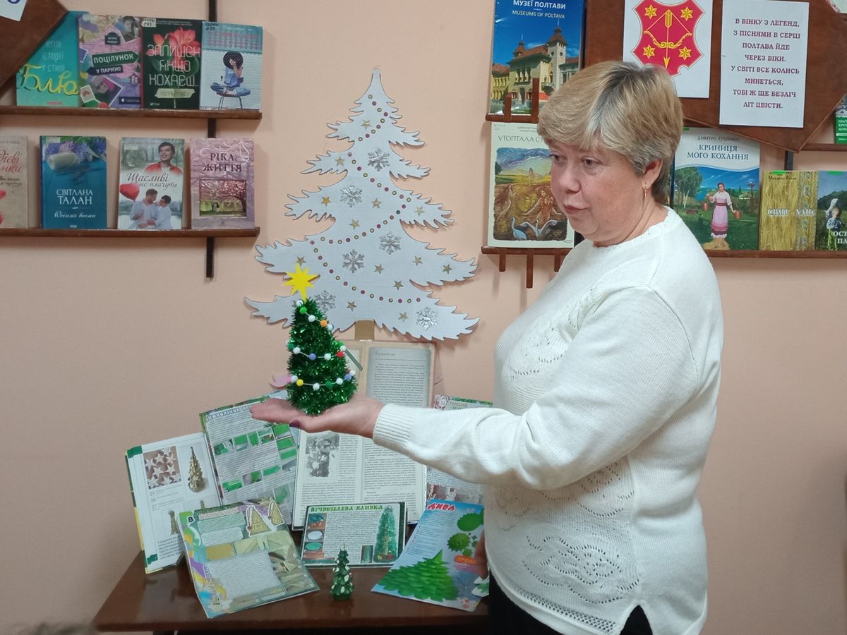 На майстер-класі у бібліотеці-філії №11 Центральної бібліотеки Полтавської МТГ під керівництвом бібліотекарки Світлани Городинської теж вчилися виготовляти ялинку. Для цього учасникам знадобилися не так багато матеріалів, лише щільний папір, зелений дощик та маленькі пухнасті кульки для декору. Зверху блискуче стилізоване деревце прикрасили зірочкою із жовтого картону.