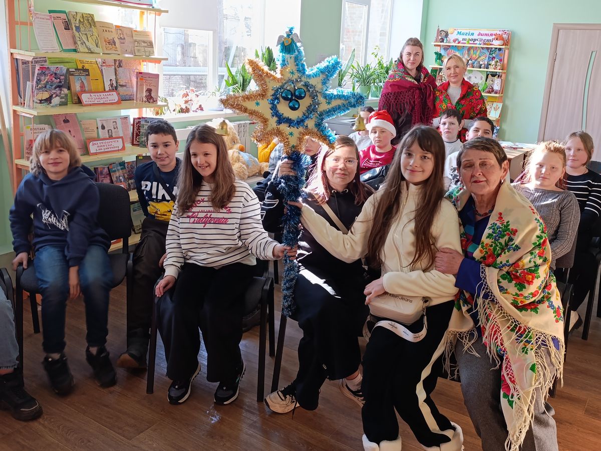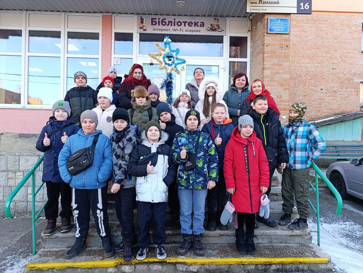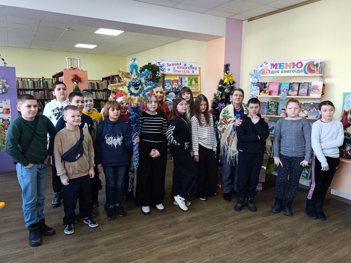 Наші гості завітали до бібліотеки з театралізованими подарунками, різдвяною зіркою, колядками та піснями. Це було яскраво, красиво й надзвичайно приємно. Нехай світле свято Різдва принесе мир, спокій і розвиток нашому народові!