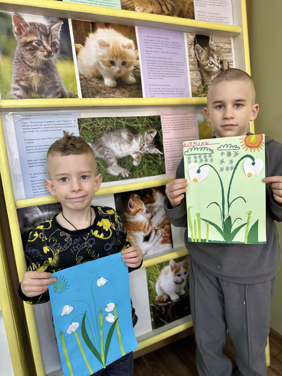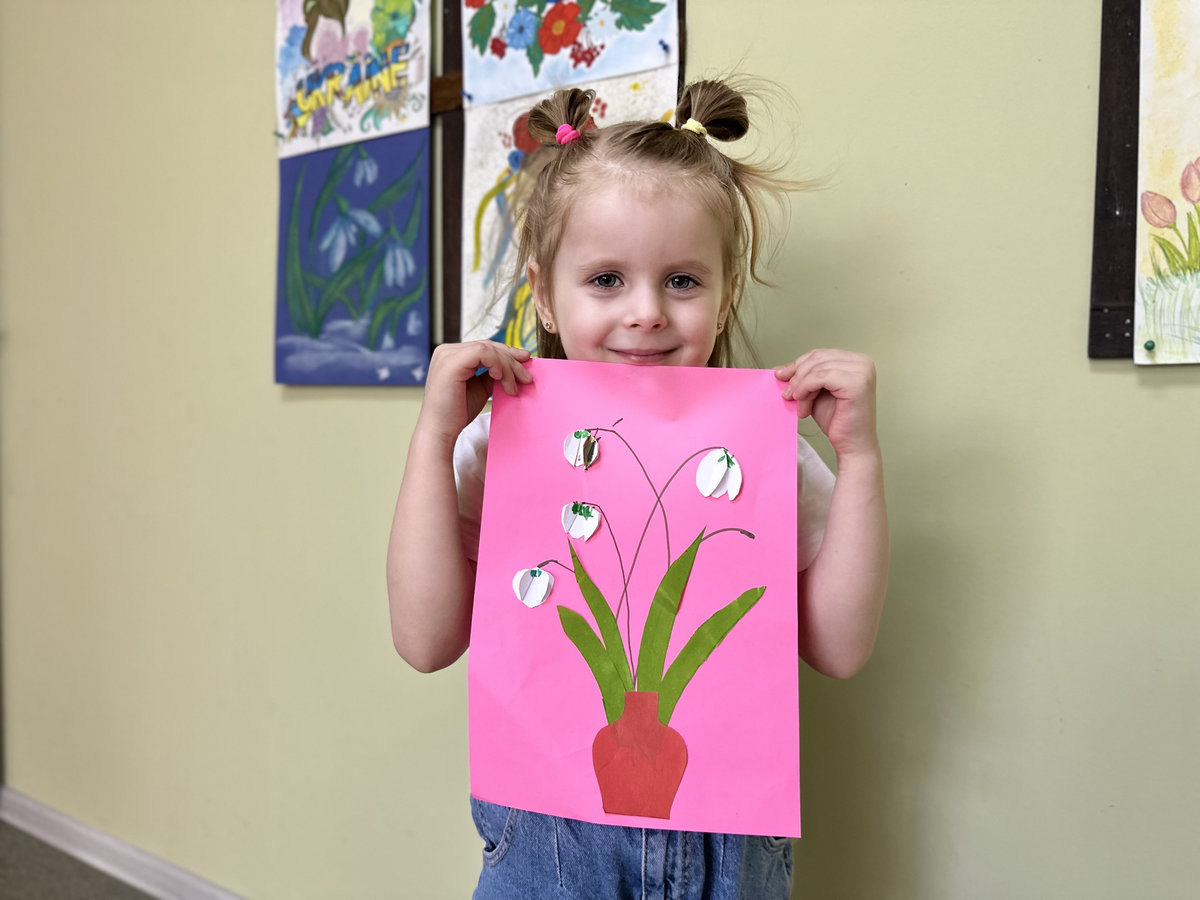 Діти із захопленням взялися до роботи: вирізали пелюстки, складали папір, формували стеблинки та створювали власні маленькі весняні композиції. У кожного підсніжник вийшов особливим і неповторним — таким же щирим, як і дитячі усмішки.