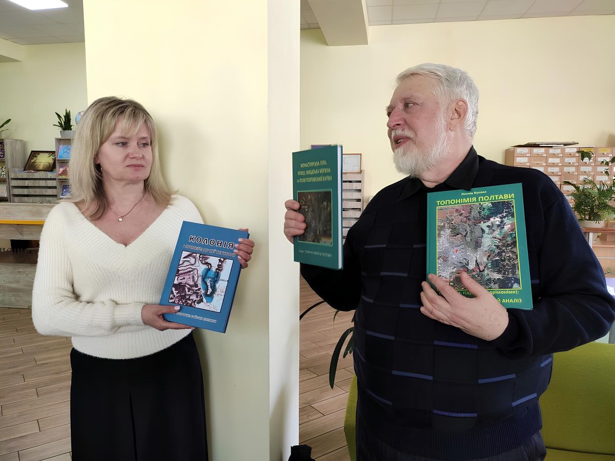 Він же презентував бібліотеці цікаві краєзнавчі видання - дослідження із серії «Історичні райони Полтави» та власну монографію про походження топонімів нашого міста.