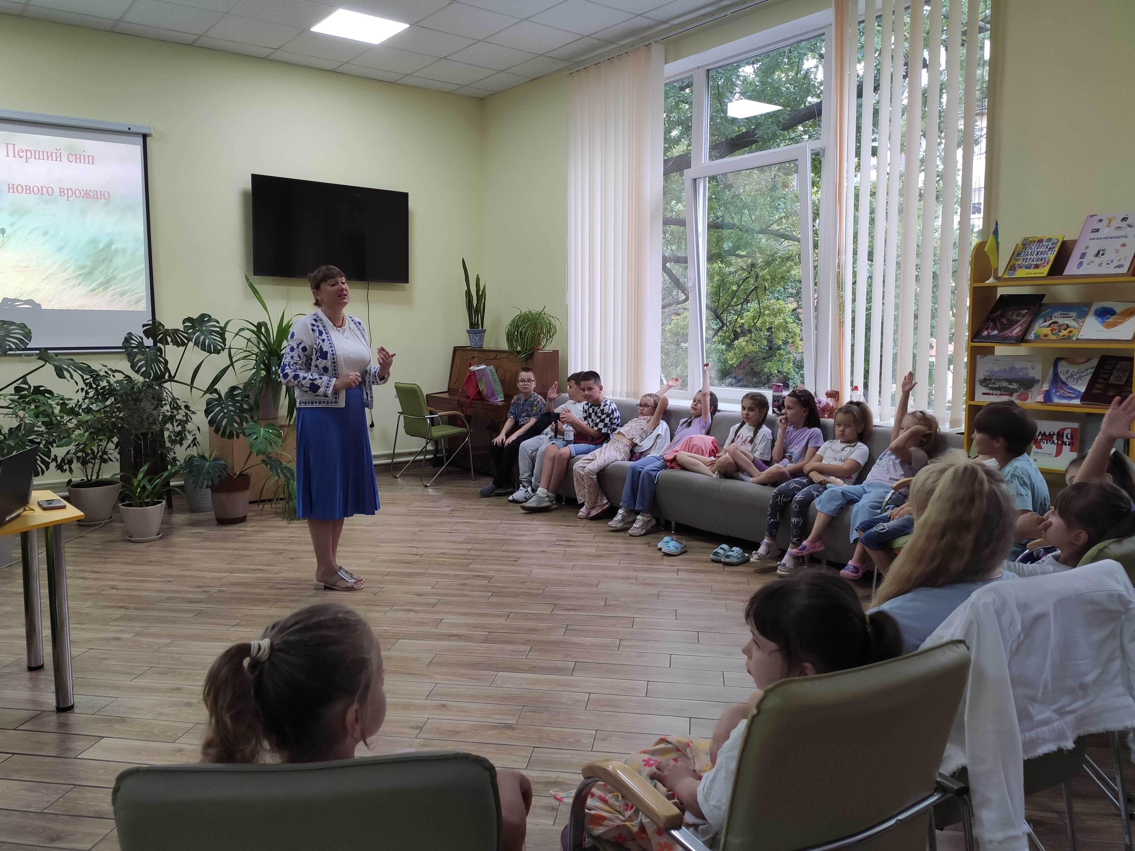 Літнє дозвілля в бібліотеці - це чудовий спосіб провести час з користю для себе, а ще – можливість взяти участь в різноманітних активностях. Серед таких заходів - інтерактивні програми етнографічного спрямування, які в ігровій формі розширюють знання про обряди, звичаї, та не лише створюють атмосферу свята, а й дозволяють зануритися у світ народних традицій. Такою цікавою, пізнавальною та захопливою стала для юних читачів Центральної бібліотеки Полтавської МТГ розповідь під назвою «Перший сніп нового врожаю».
