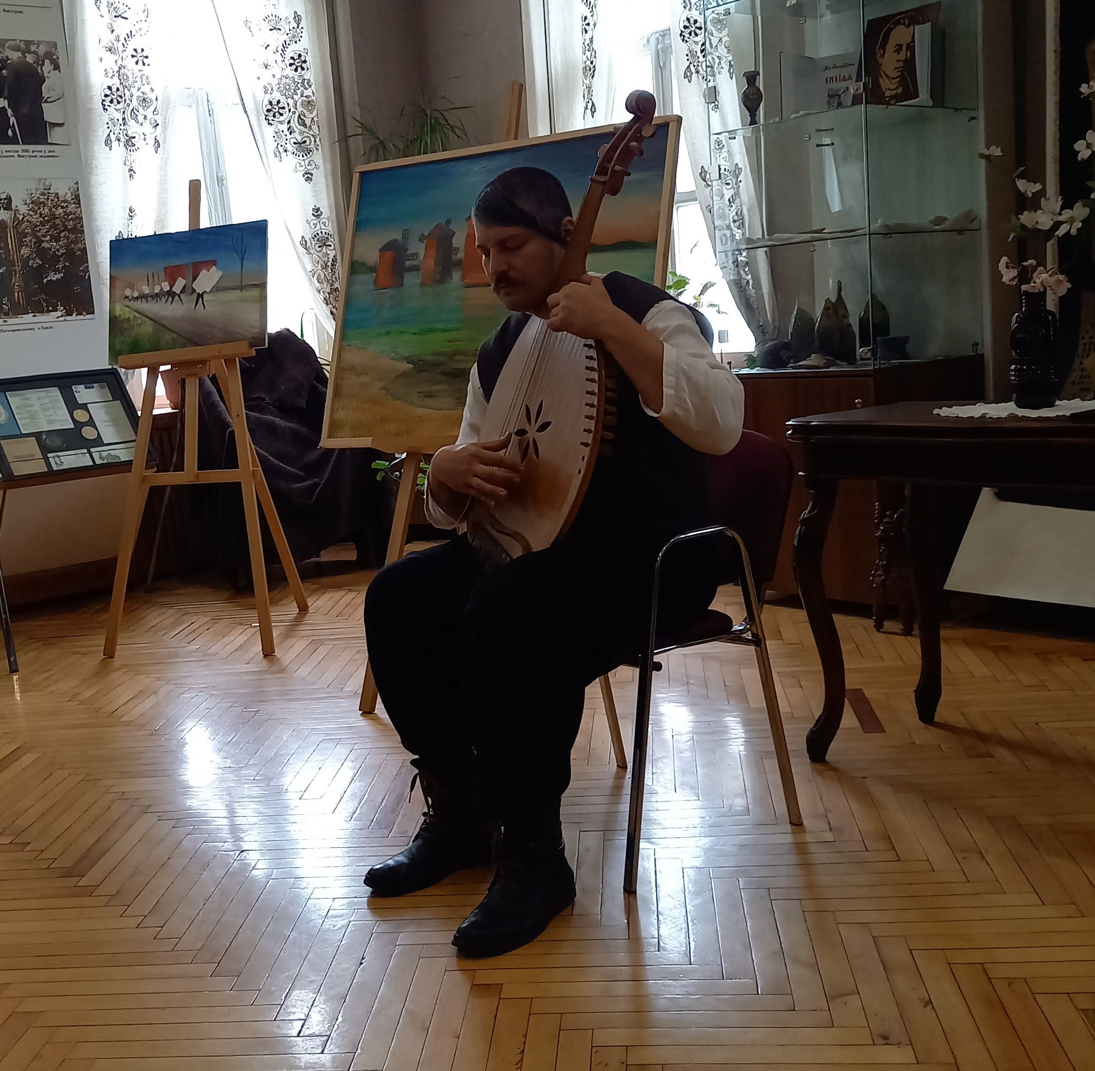 Назар Божинський вивчає і виготовляє старовинні українські музичні інструменти. Він також оволодів віртуозною грою на них. Його музична виконавська майстерність була визнана на Всеукраїнському конкурсі «Червона рута», лауреатом якого він став у 2013р. На виставці презентовані торбан, кобза, ліра, бандура, цимбали, сопілка та бубон.
