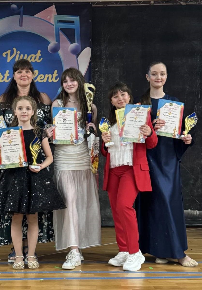 - Заворожили своїми талантами і на Міжнародному фестивалі-конкурсі «Vivat Art Talent», м. Лутракі, Греція: учасниця Ксенія Криворотенко отримала Супер Гран-прі та грошовий приз, а колектив — 2 перших місця.