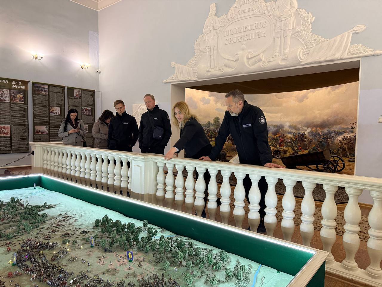 У ході перебування в Полтаві делегація відвідала Державний історико-культурний заповідник «Поле Полтавської битви». Директорка заповідника Євгенія Щербина ознайомила скандинавських гостей з історією музею, поля Полтавської битви, історією Гетьманщини, українсько-шведського союзу початку XVIII століття та подіями Великої Північної війни.